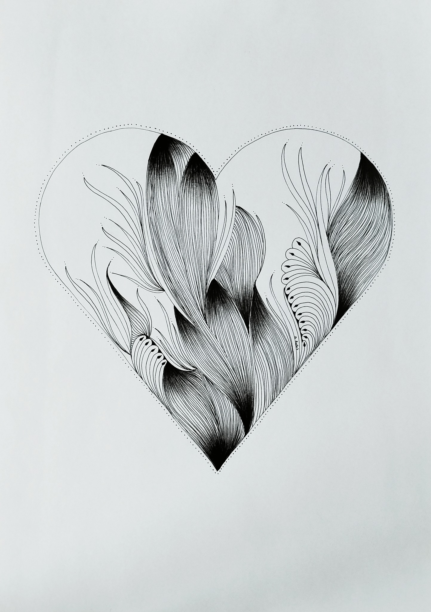 Matériel: Feutre fin noir, ombrage au crayon de bois