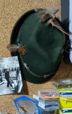Illustration : moi-même : le chapeau de papa et sa photo dans mon garage