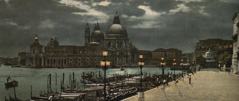 La luce di Venezia moltiplicata dall'acqua, che la percorre e la penetra, è senz'altro un patrimonio intangibile, diffuso e specifico della città anfibia. Una costante negli scritti dei viaggiatori di ogni secolo è la sensazione di ammirato stupore prodotto dai riflessi guizzanti dell'acqua sui palazzi che sembrano palpitare di vita. Così la città respira al ritmo quieto delle maree e delle onde. La luce che viene dal basso si percepisce ancor più di notte nella sua vitale fluidità. Le mille lune nei canali riflettono e moltiplicano l'unica luna celeste. Byron perciò amava nuotare fra quelle lune protagoniste della città profonda, in quel liquido cielo alla rovescia.