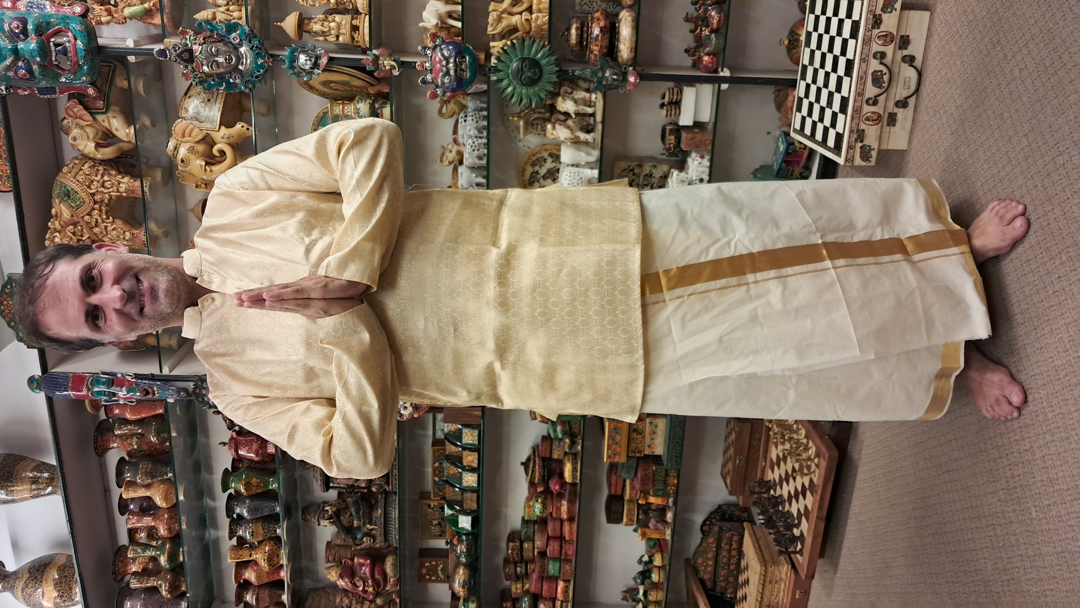 Il faut de l'or, il faut que ça brille, les femmes sont absolument superbes dans ces tenues, dévoilant un florilège de couleurs, de bijoux et de broderies, les mains couvertes de dessins au henné et du jasmin plein les cheveux, tandis que l'ambiance est assurée par le son des tambours et des shehnai, sorte de hautbois au son nasillard très caractéristique. Votre serviteur avait quant à lui opté pour une tenue indienne plus traditionnelle avec veste longue en soie et dothi ! ...:-)