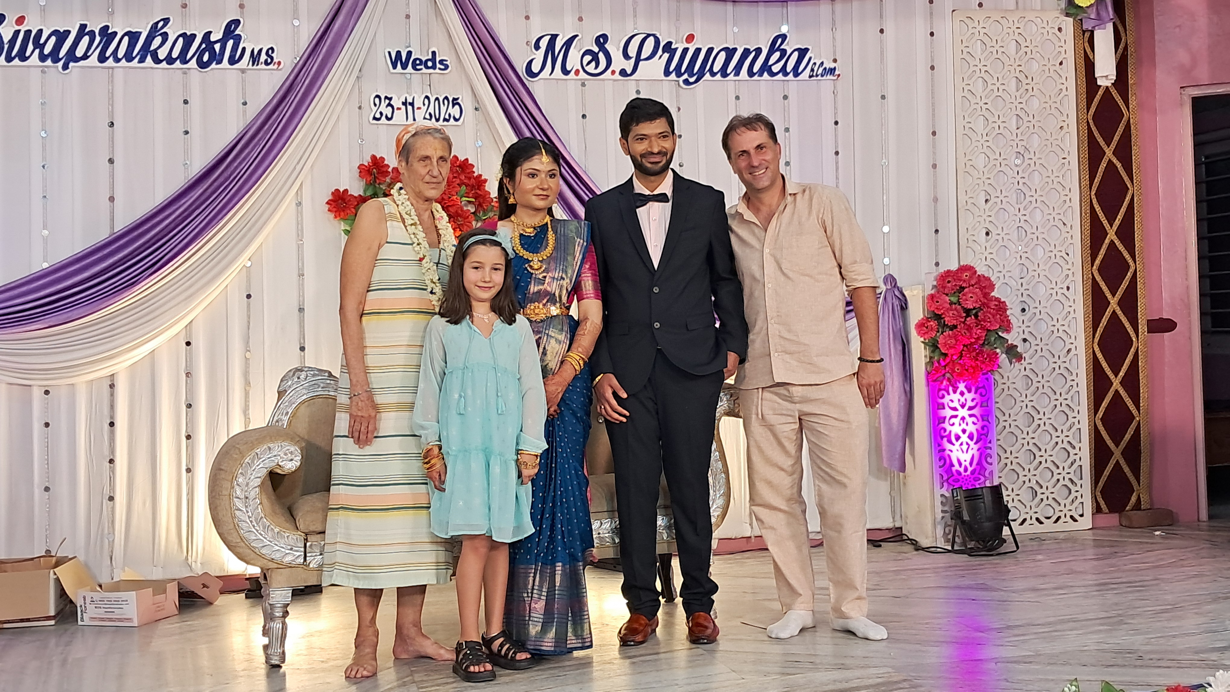 Tout ce petit monde s'est côtoyé à Toulouse depuis une dizaine d'années, ma tante et ses amis ayant participé à accueillir et soutenir ces jeunes indiens, débarquant alors du lycée français de Pondichéry pour venir étudier en France. Des amitiés se sont soudées, les chemins se sont depuis personnalisés, mais Siva a pour sa part trouvé du travail à Toulouse dans l'industrie automobile en tant qu'ingénieur, et convie toutes ces amitiés toulousaines fortes à son mariage ici à Madurai.... moi compris, ma tante lui ayant régulièrement parlé de moi.