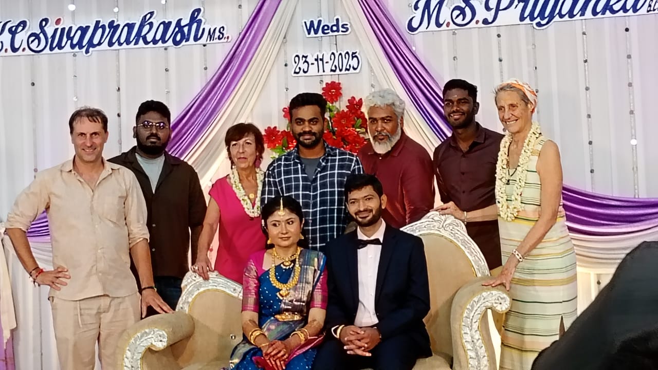 Puis arrivée à Madurai dans la perspective du futur mariage de Siva (prononcez Shiva) et Prianka auquel je vais bientôt assister ! Je retrouve là ma tante Brigitte grâce à qui j'ai été convié à l'heureux événement et que je n'ai pas vu depuis plusieurs années, ainsi que Magalie, Yves-Michel, Catherine Giulio et Clara, amis français du marié et de ma tante, et ses amis indiens Milan et Bhuvan ayant étudié avec lui à Toulouse.