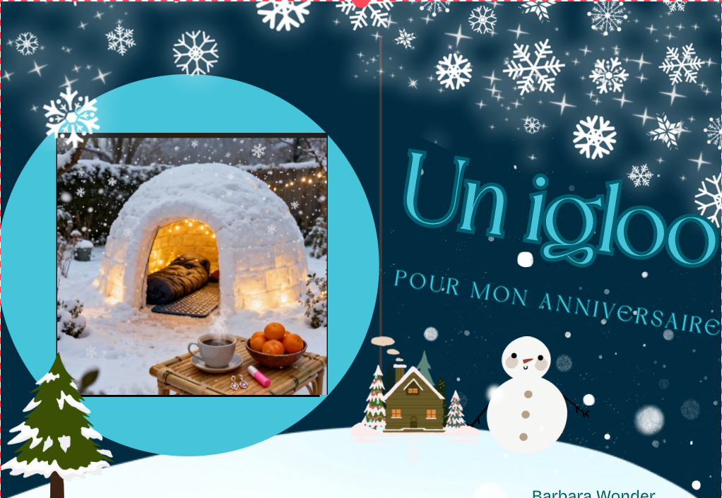— Oh… c’est adorable, mon amour. Merci pour ce cadeau incroyable… Jamais je n’aurais imaginé te voir construire un igloo dans notre jardin.