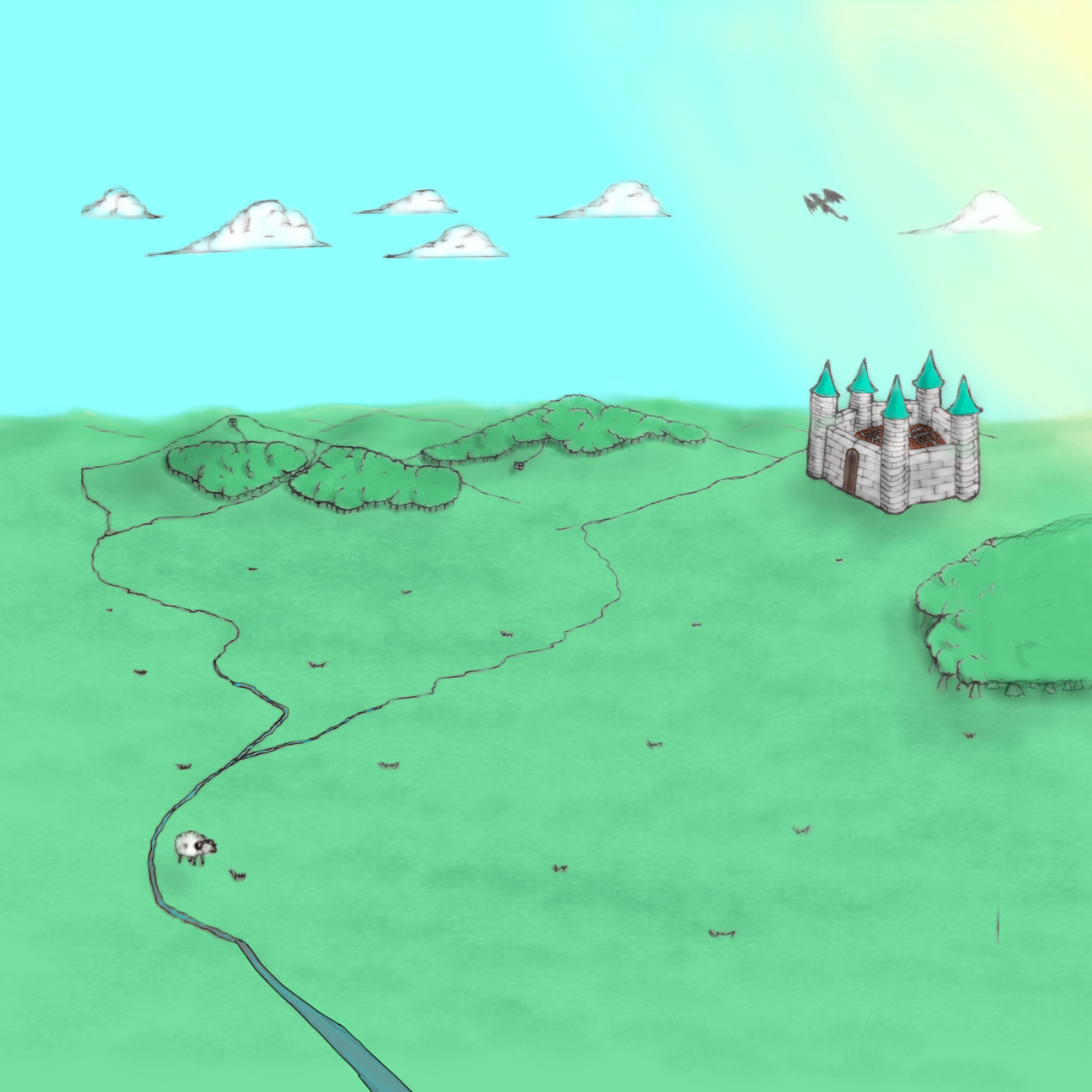 Je me tenais sur le flanc d’une colline et buvais l’air frais du matin. Le ciel de Katam brillait de son éternel éclat azuré. Mon regard se perdait à l’horizon, oscillait entre les paisibles bourgades du mont Katam, où se dressait fièrement le château. Il semblait surveiller ses terres avec un mélange de bienveillance et de sévérité. La Cordeline, cette rivière délimitant une frontière avec l’un des royaumes voisins, suivait son cours. Les troupeaux de Béliarocs paissaient au sein de leurs vastes enclos, à proximité des immenses champs de Flavoine.