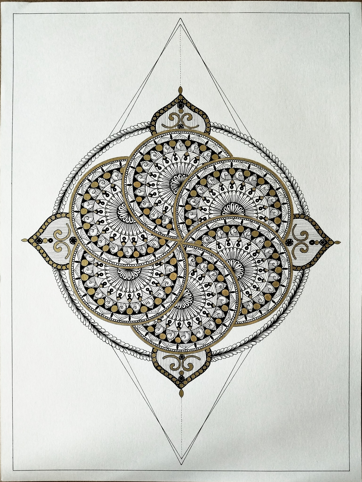 Matériel: Feutre fin noir, stylo gel or et blanc