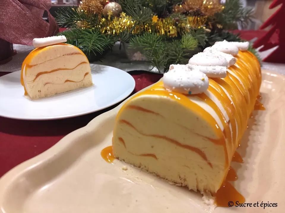Pour voir la recette avec les photos pas à pas : https://www.sucreetepices.com/2025/12/recette-buche-glacee-semifreddo-vanille-passion-recette-en-video.html