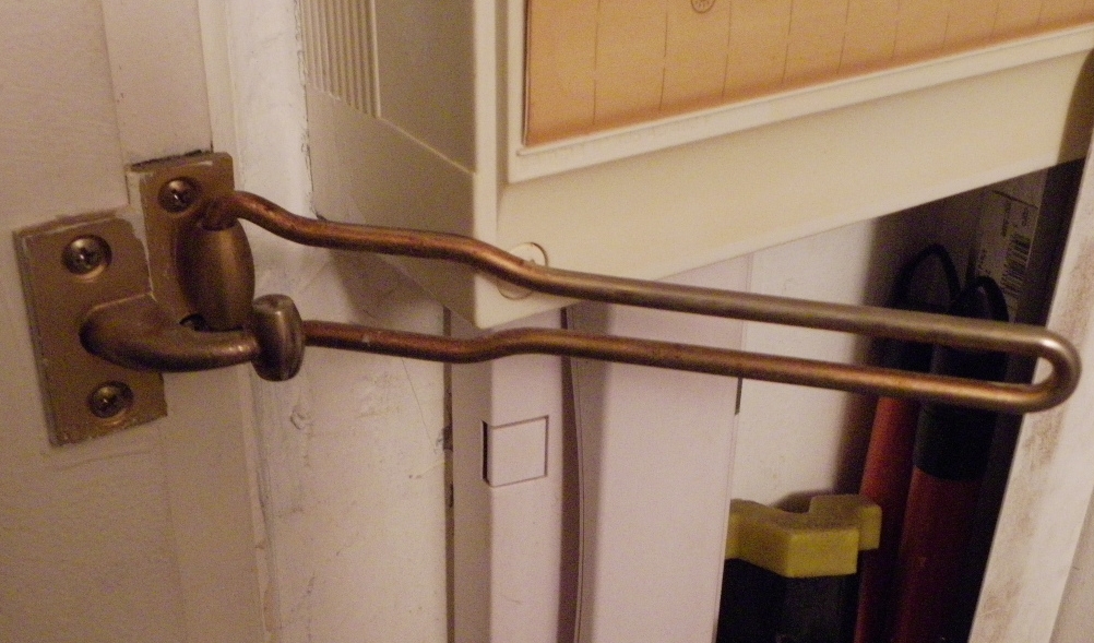 Je comprends que quelque chose est tombé dessus et a déplacé la tige pour la mettre en position d'interdiction d'ouverture. Normalement, quand j'ouvre la porte pour sortir, cette tige est glissée sur le coté.