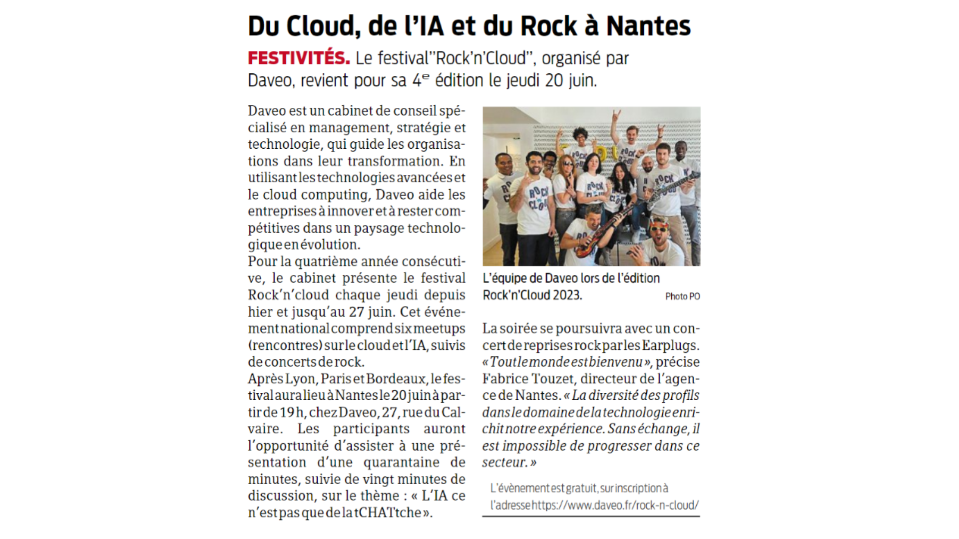 Le festival ‘’Rock'n'Cloud’’, organisé par DAVEO, revient en force pour sa 4e édition en juin 2024. C'est le seul festival qui allie cloud, intelligence artificielle et concerts de rock.