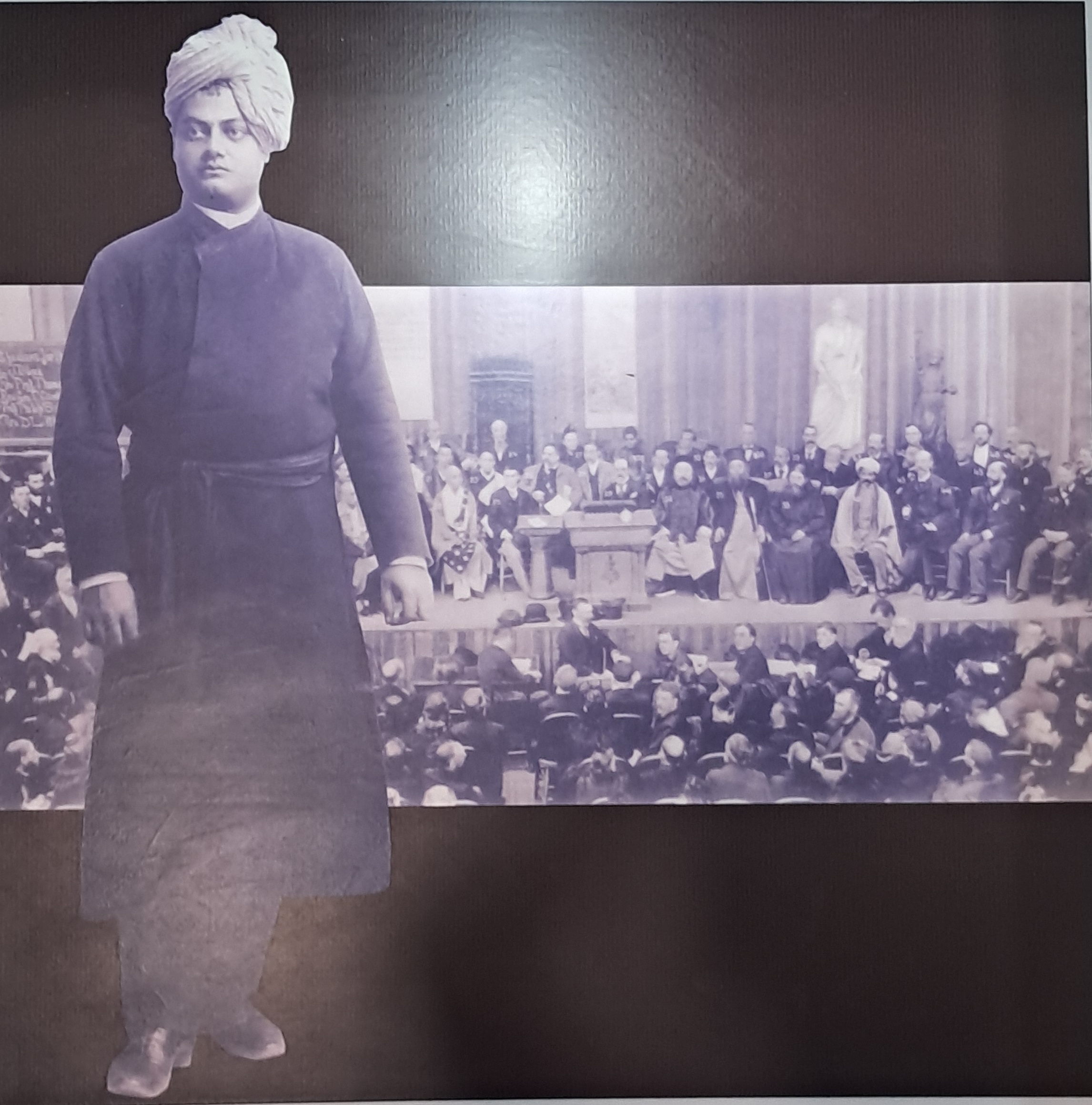 Il part ensuite à Chicago, à l'Exposition Universelle, où se tient le premier Parlement des religions. Là, il expose le 11 septembre 1893 une présentation de l'hindouisme dans l'esprit de l'enseignement de son maître Râmakrishna, qui fera date, associé à un discours universaliste prônant l'importance de la spiritualité et de la tolérance entre toutes les religions, discours qui sera ovationné par les 7000 personnes présentes et qui fera sa renommée internationale.
