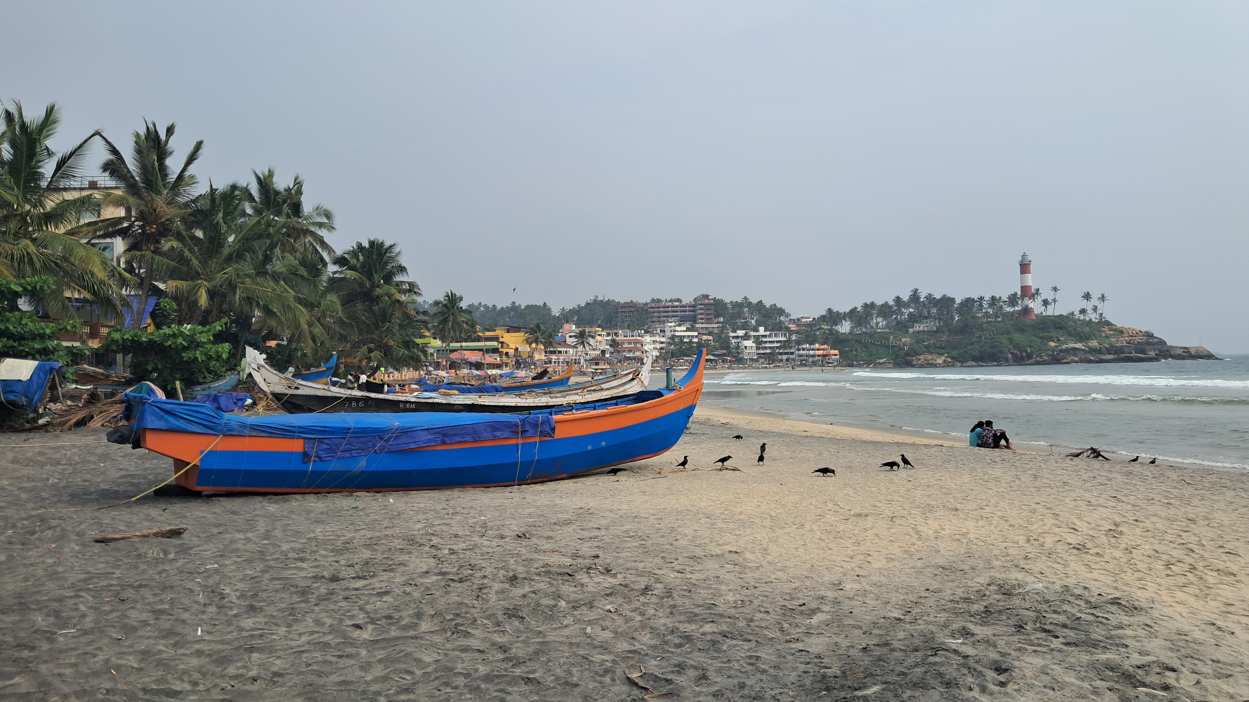 Première étape à Kovalam, au sud de Trivandrum, village de pêcheurs établi dans une jolie petite baie. Cet endroit est devenu un endroit très prisé des touristes, indiens comme étrangers, et de nombreux établissements proposant des soins ayurvédiques se sont établis ici.