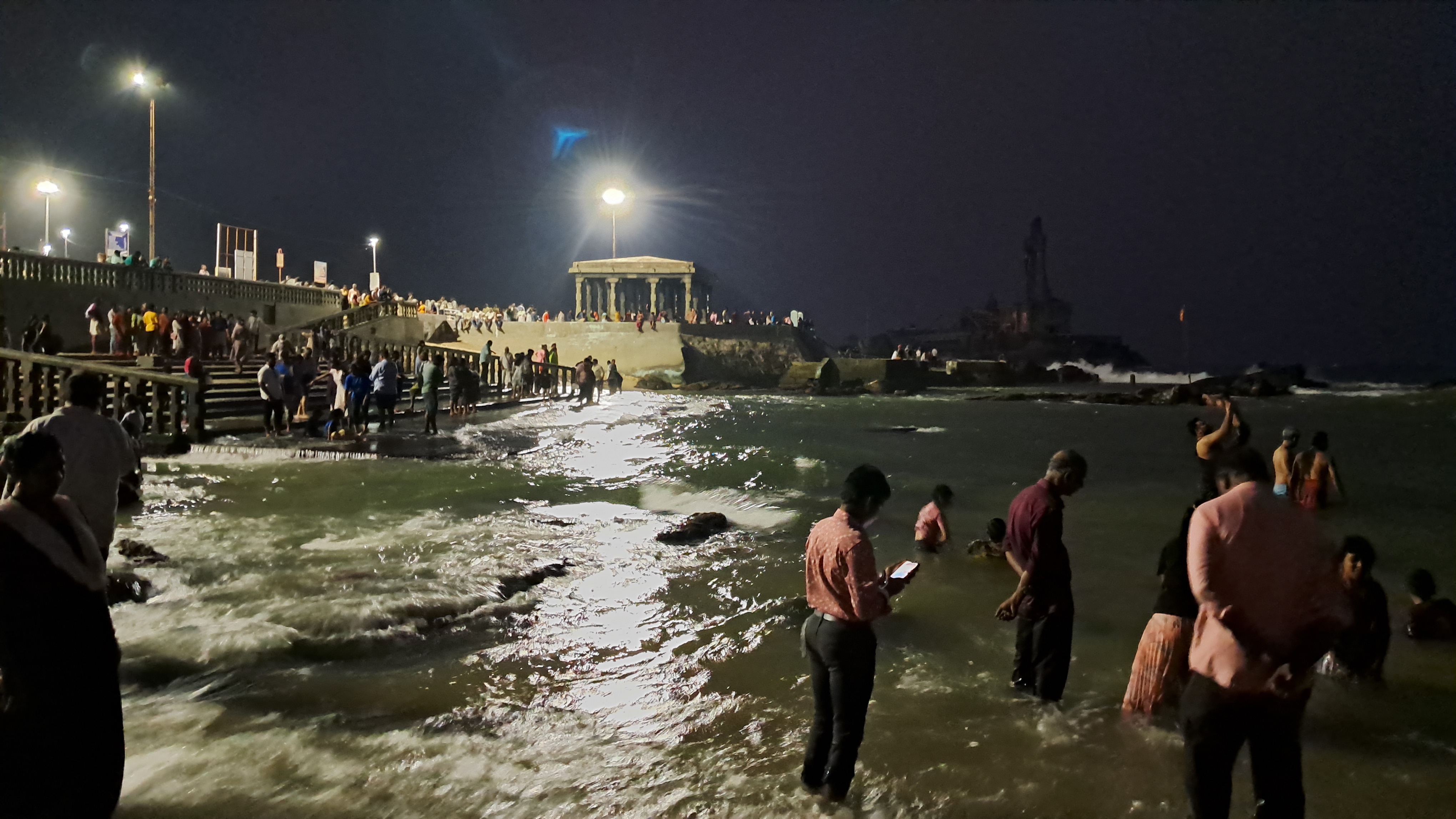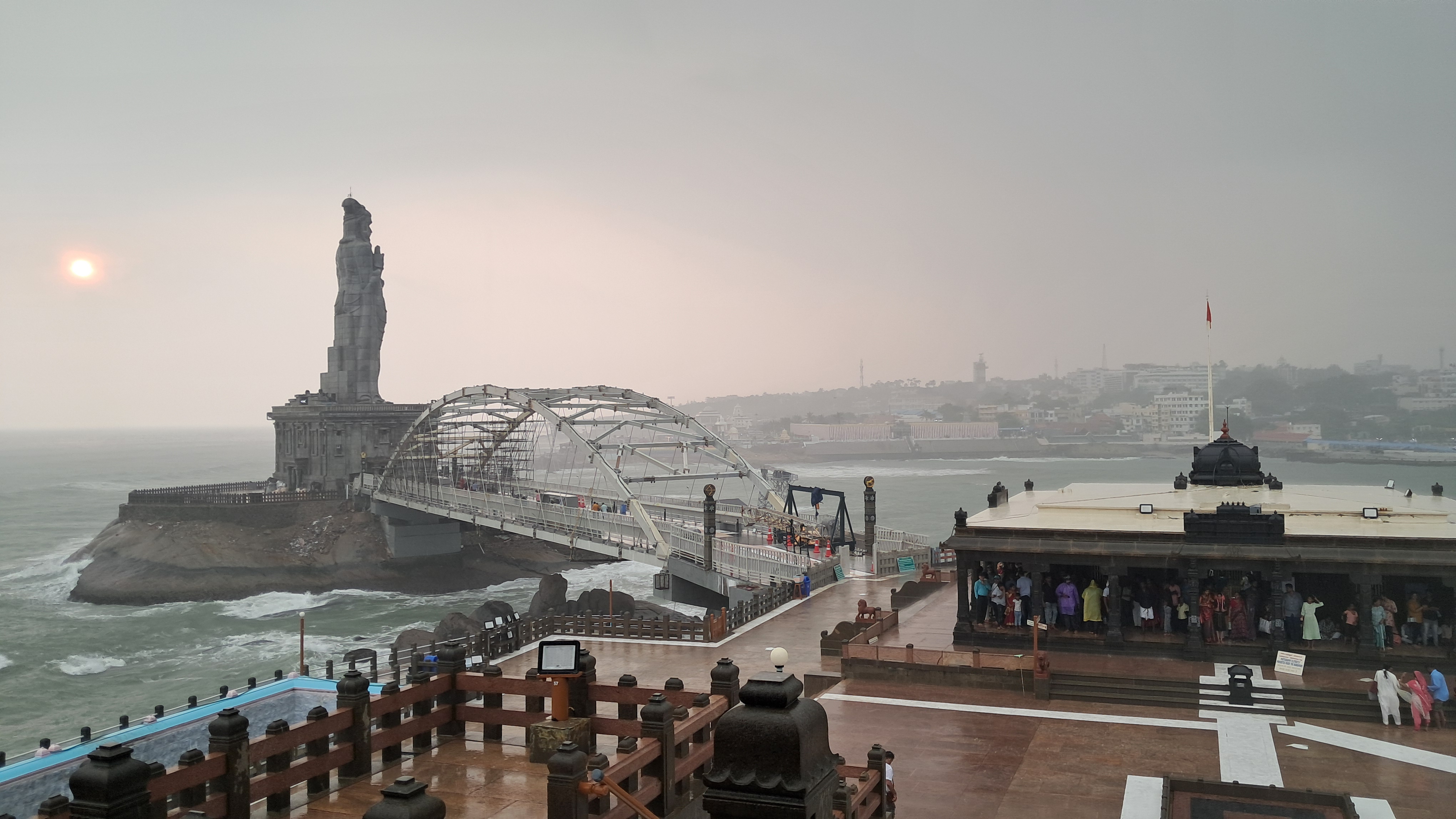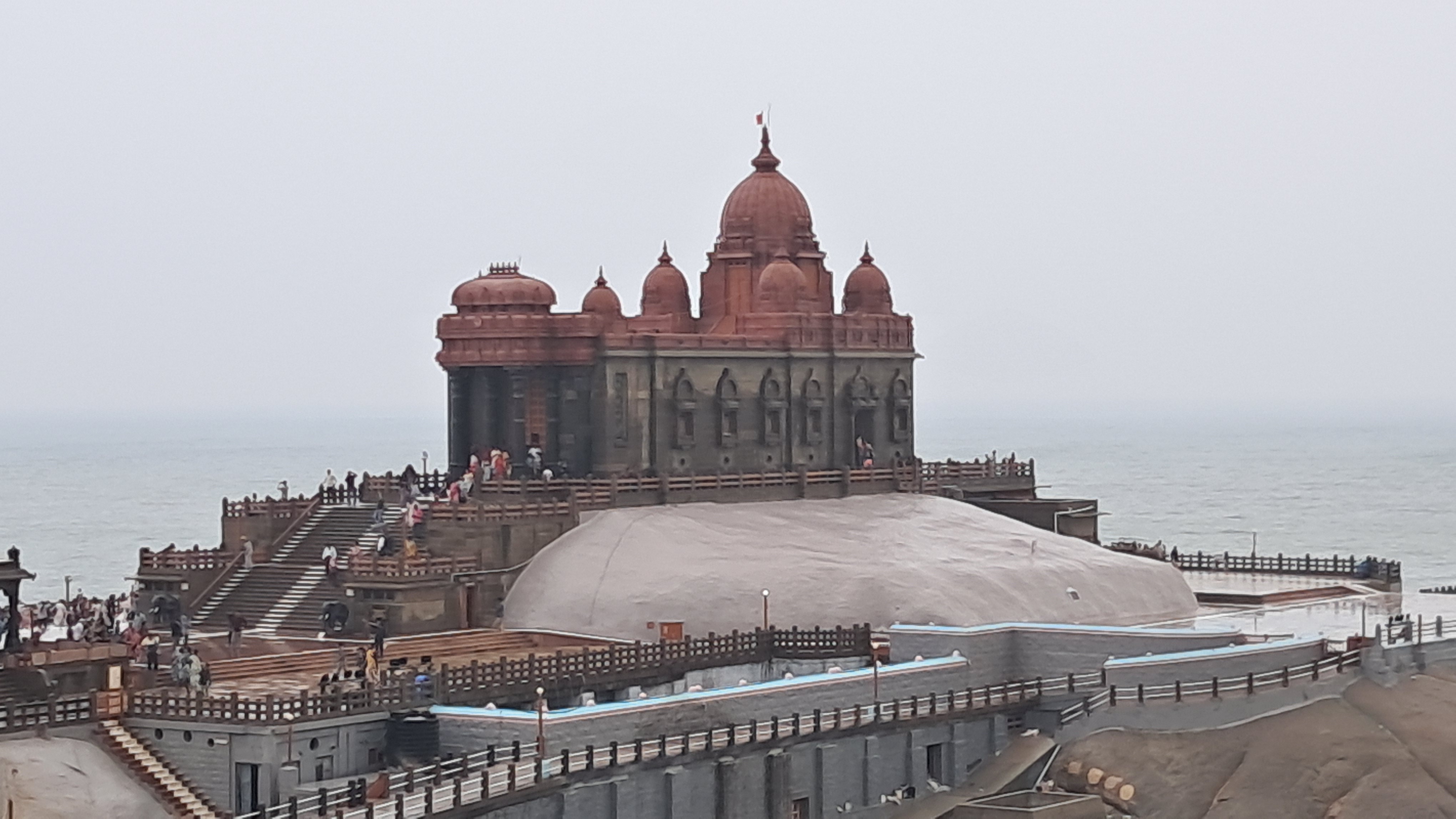 En témoigne donc le grand mémorial construit depuis sur l'un des deux fameux rochers en face de Kânyâkumâri, l'autre accueillant une énorme statue du poète tamoul Thiruvalluvar. Depuis peu, un pont relie les deux rochers. On accède « rapidement » au site en ferry, exceptée la très longue file d'attente pour aller et revenir. Egalement présent ici l'un des nombreux ashrams de la Râmakrishna Mission qui diffuse ses enseignements.