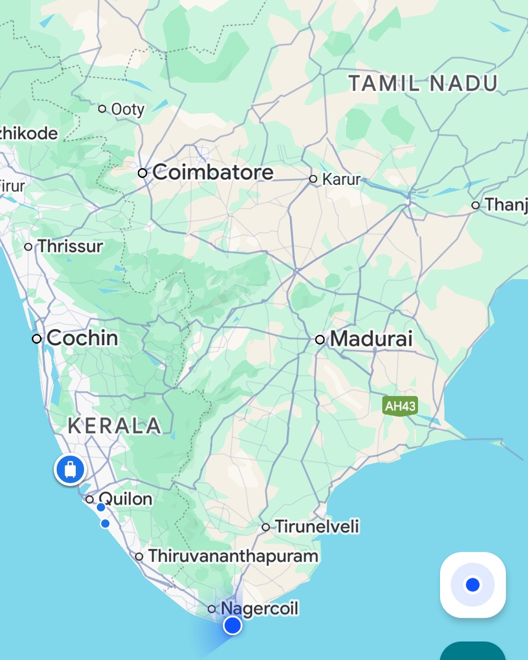 Ma cure ayurvédique étant terminée, et fort de ces 15 jours de retraite très paisibles entouré de personnes très sympathiques, je reprends le cours de mon voyage, direction le sud.