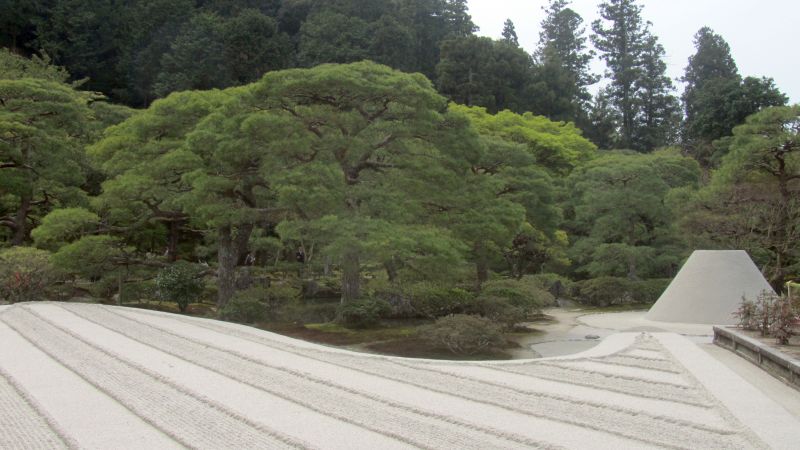 Le jardin sec, et son cône parfait, représentant le Mont Fuji