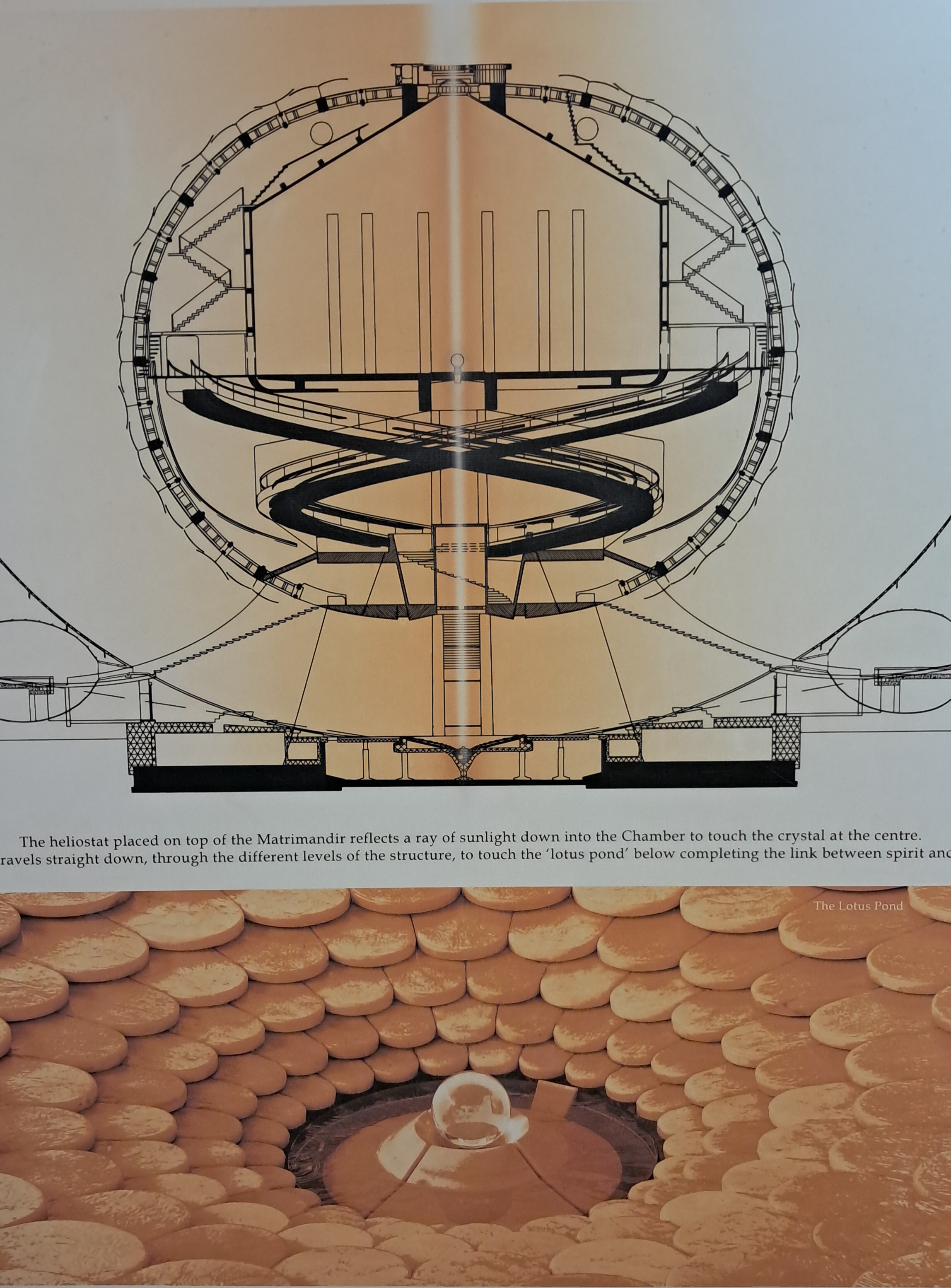 Conçu comme une sphère parfaite trônant au milieu de 12 jardins, il se situe à côté d'un immense Banian représentant le centre géographique de la ville, et représente quant à lui le centre spirituel du projet. Il mettra 37 ans à être entièrement réalisé, son achèvement prenant fin en 2008.