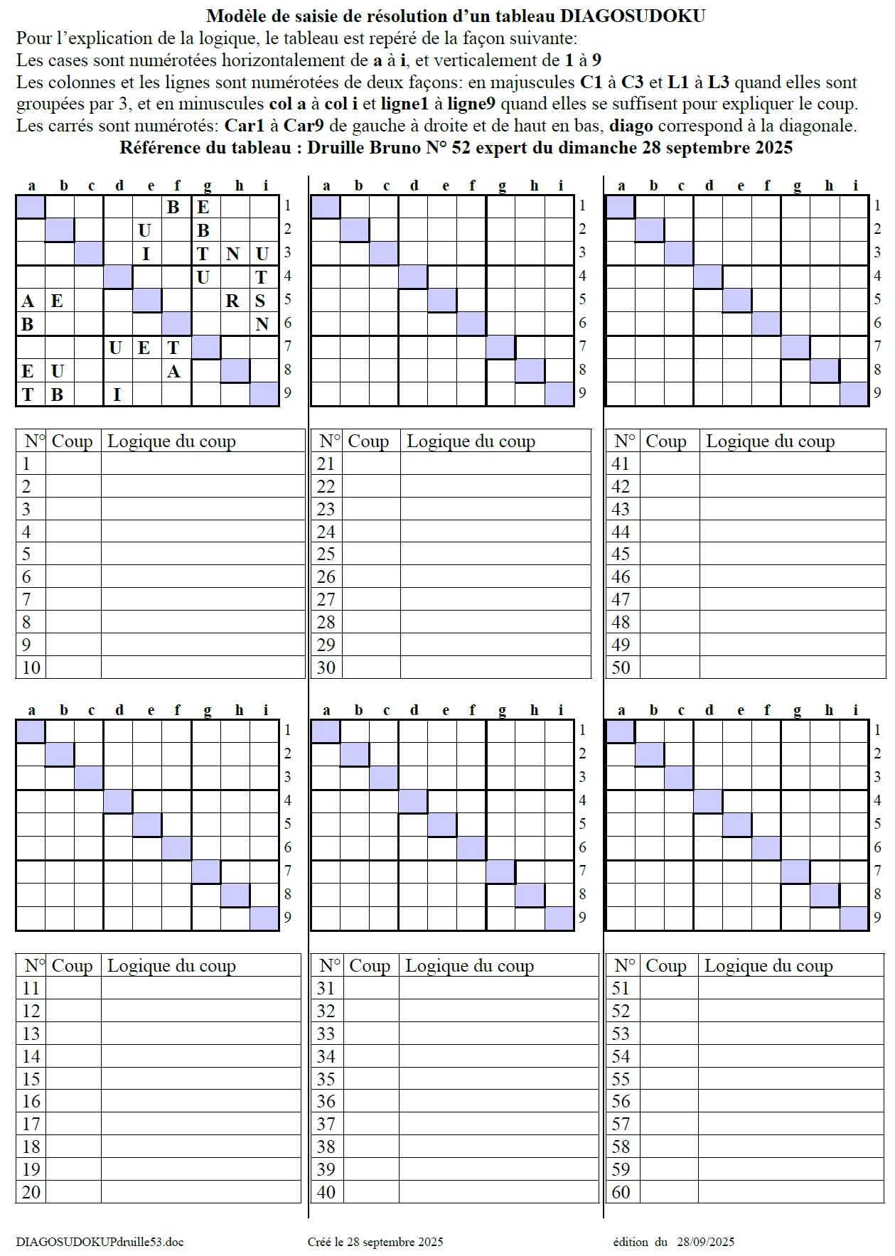 53° diagosudoku, avec la solution du cinquante-deuxième