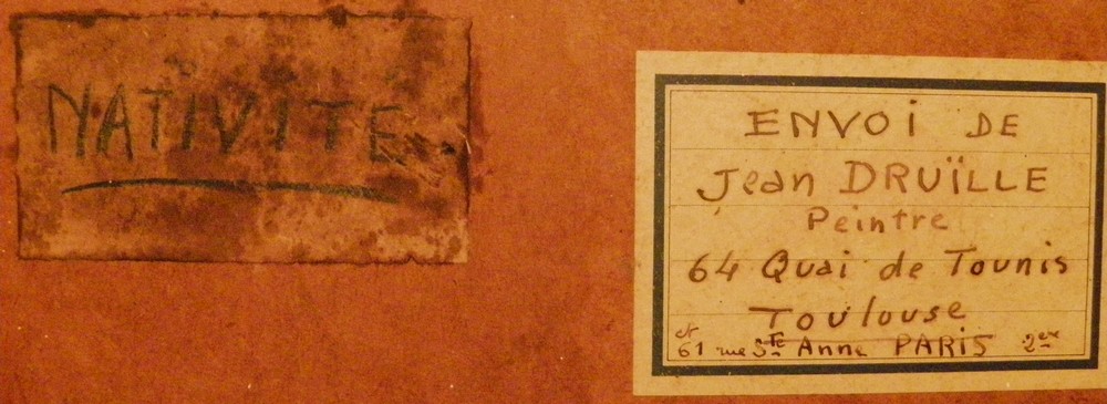 J'ai été contacté par le biais de mon blog par Delphine. Elle m'a trouvé en cherchant des informations sur le peintre Jean Druille, car elle a déniché dans le grenier d'une maison ancienne achetée il y a quelques années un tableau intitulé « la Nativité » et signé Jean Druille.