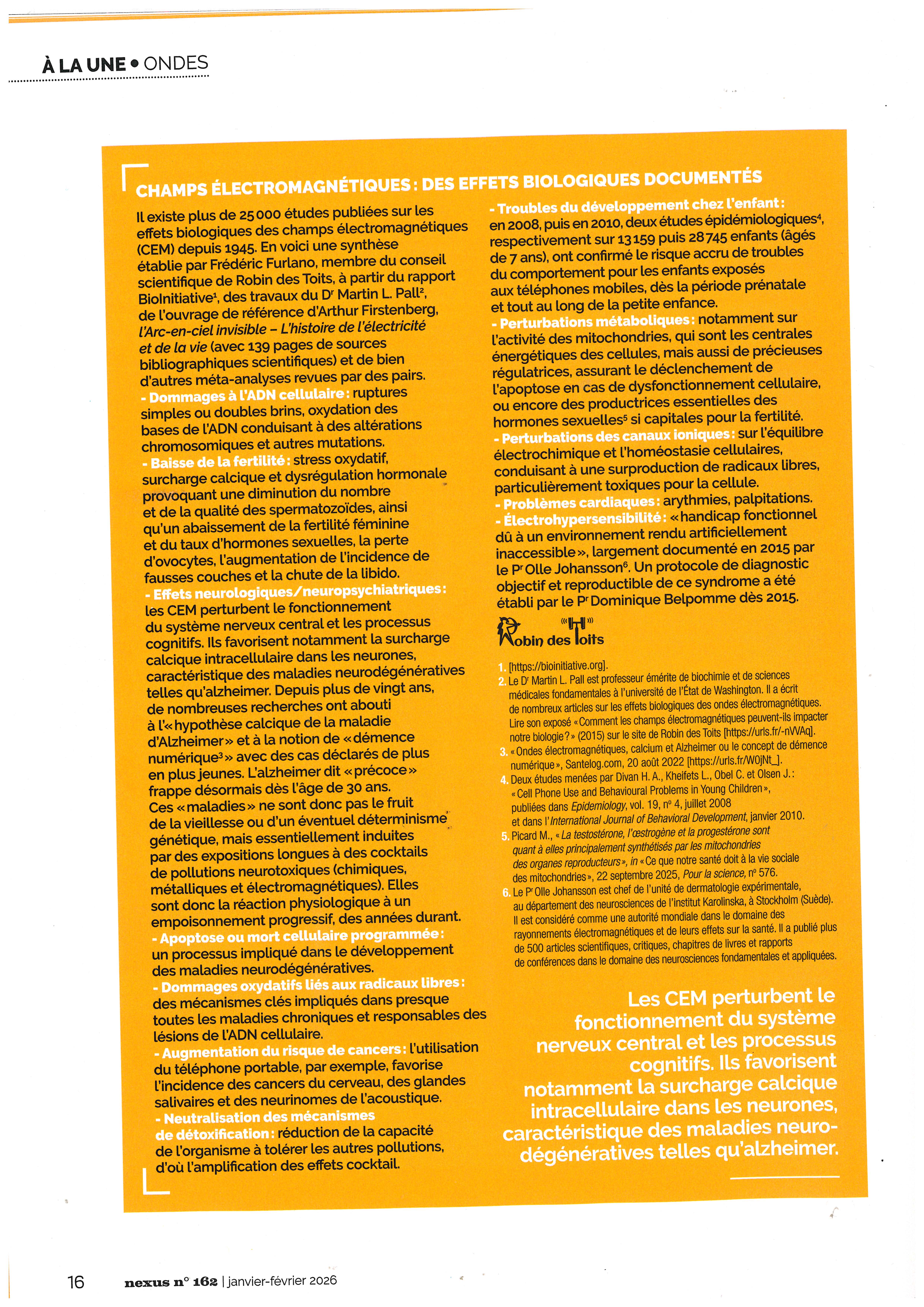 Dossier exceptionnel, merci NEXUS pour cette mise au point sur la pollution électromagnétique.