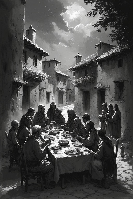 Pour la première fois depuis des années, elle se demanda si elle n’avait pas tout compris à l’envers. Le ciel s’embrasa de teintes orange et pourpres à mesure que le soleil déclinait derrière les collines. Les villageois allumèrent des lanternes de fortune, et bientôt la place s’illumina de mille petites flammes vacillantes. Elyna resta assise, incapable de partir. Elle n’était plus l’étrangère silencieuse. Elle riait doucement aux anecdotes du vieux conteur, elle goûtait aux dattes sucrées que les enfants lui tendaient, elle écoutait les chansons anciennes qu'Alma entonnait d'une voix rauque et chaleureuse. Elle avait essayé de prendre, alors qu’il suffisait de se laissait traverser. À un moment, Alma s’approcha d’elle. Elle s’assit lentement, les jambes repliées sous elle, et lui tendit un objet qu'elle avait gardé serré dans sa main ridée. C'était une petite pierre plate, polie par le temps, sur laquelle un mot avait été gravé maladroitement. Elyna la prit avec respect, la tenant comme on tiendrait un cœur fragile.
