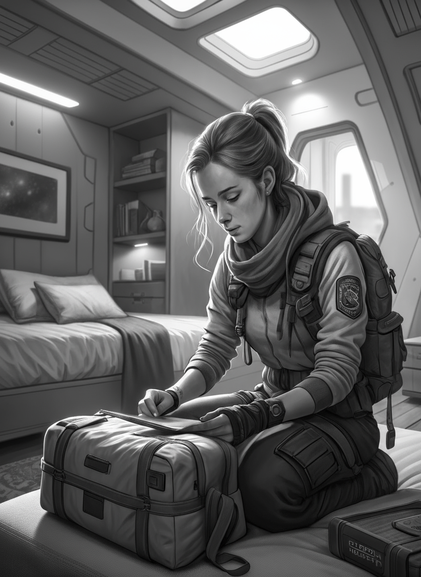 Elyna avait tout préparé avec un soin méticuleux. Chaque point de sa check-list avait été coché dans l’ordre, comme un rituel sacré auquel elle ne pouvait déroger. Pragmatique jusqu’à l’obsession, elle organisait ses missions avec la précision d'un horloger, trouvant dans cette discipline méthodique un fragile rempart contre l’incertitude.