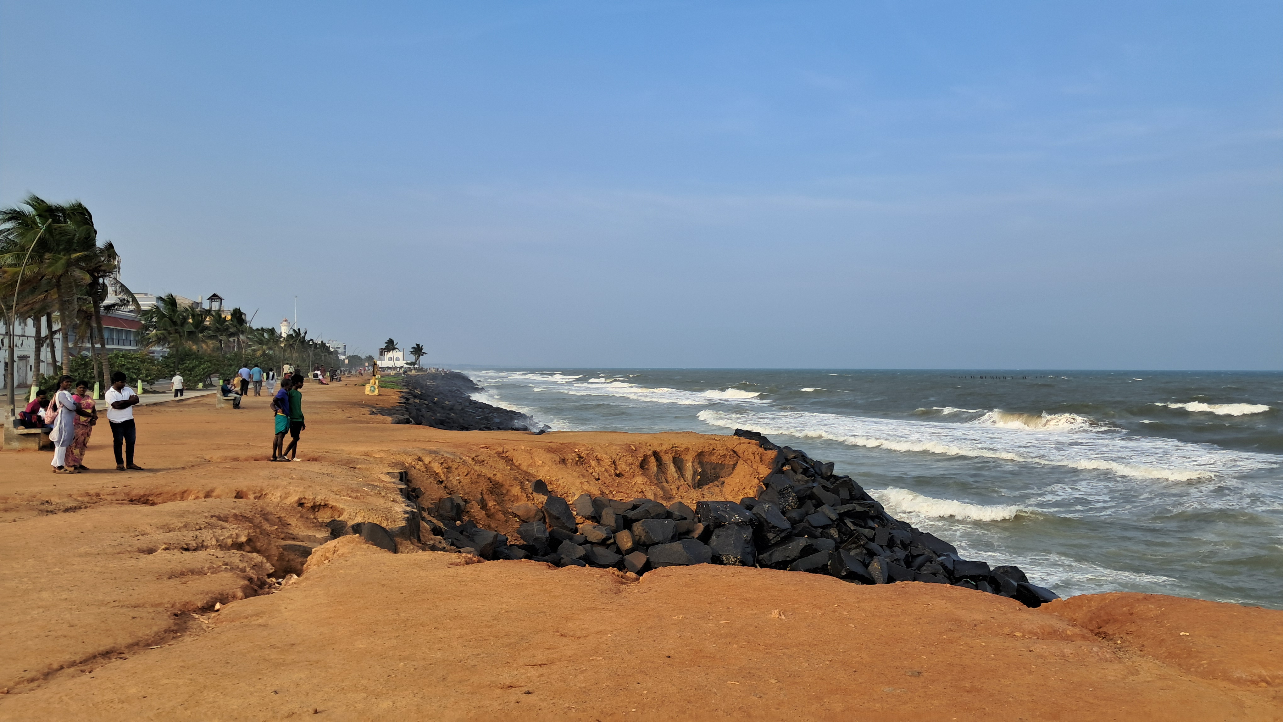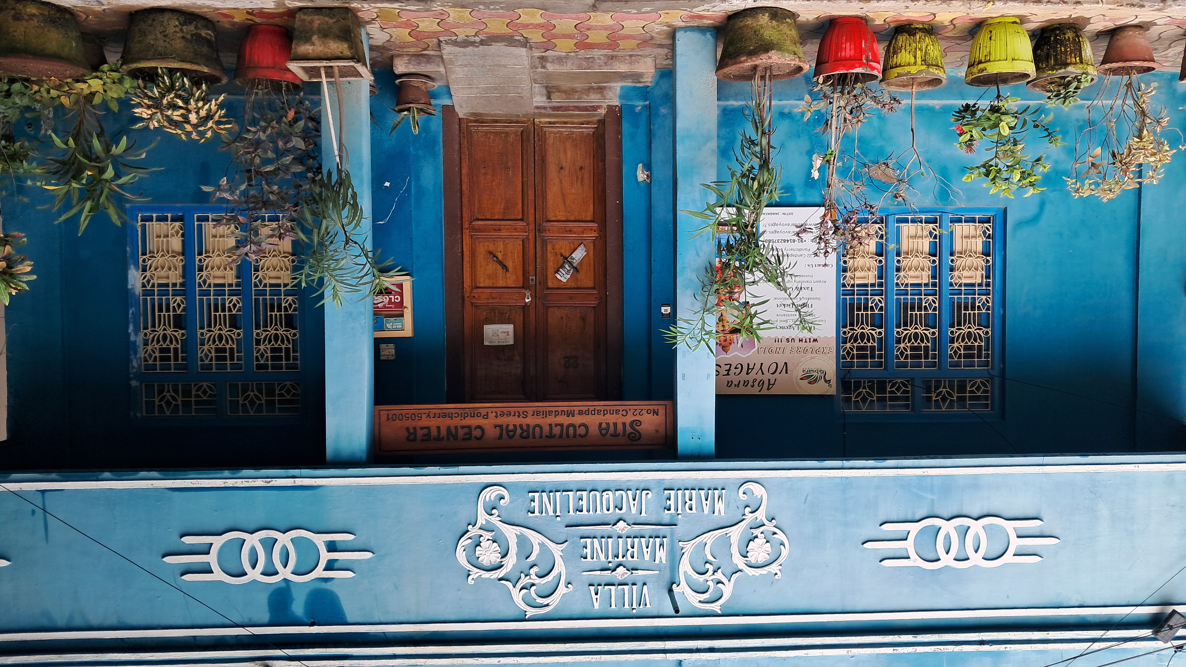 Toute l'architecture de la ville est l'héritage de ce passé colonial riche, avec un réseau de rues en quadrillage, des systèmes électriques et de canalisations fonctionnels, des maisons aux couleurs vives bien entretenues, notamment dans le quartier français qui jouxte la mer, ce qui en fait une ville bien agréable à vivre, et reposante comparée au reste de l'Inde. Les vestiges de la présence française sont nombreux : noms de rues et de bâtiments officiels en français, d'hôtels ou de restaurants maintenant la référence, Institut Culturel Français (le plus ancien de la soft power française), Lycée International Français, et les indiens qu'on croise dans les rues maitrisant quelques rudiments ou de bonnes notions de la langue, jusqu'à la parfaite maîtrise sans accent... On retrouve ainsi à Pondy des repères familiers qui nous éloignent de l'ambiance parfois plus confuse et oppressante des grandes villes de l'Inde... et je dois avouer que ça fait du bien.:-)