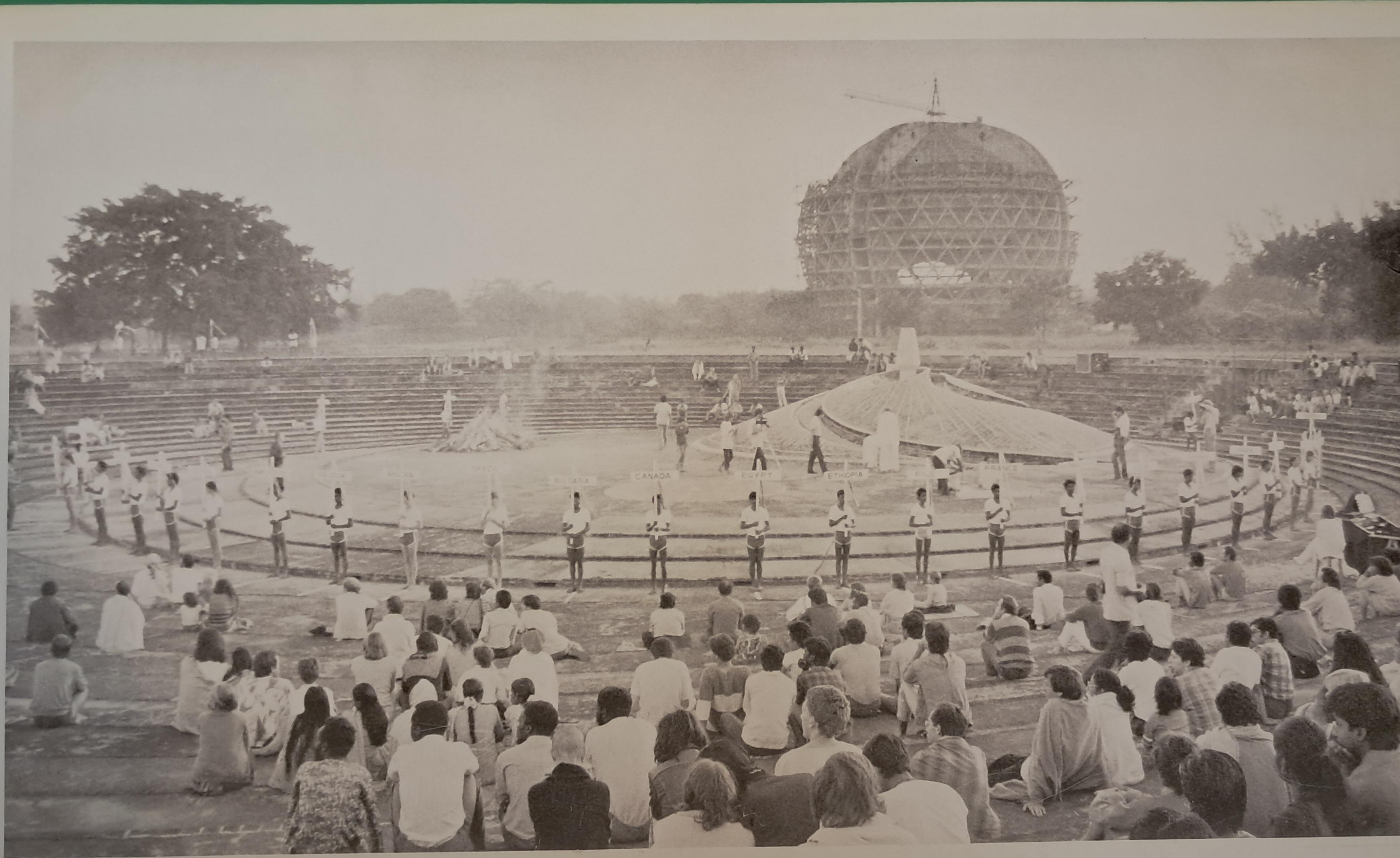 Lors de son inauguration en 1968, déjà forte du succès de son ashram, des jeunes représentant 124 nations et les 23 États indiens déposent chacun une poignée de terre de leur pays d'origine dans une Urne, une structure de marbre en forme de bouton de lotus, située au centre d'un Amphithéâtre. Initialement quelques centaines de personnes issus de 20 pays différents, ils vont alors aménager et reboiser entièrement ce terrain pour lui permettre de devenir la forêt riche et abondante qu'on peut voir aujourd'hui, au sein de laquelle des petites communautés éparses et autonomes vont être fondées, se retrouvant autour de valeurs communes et différents projets collectifs.