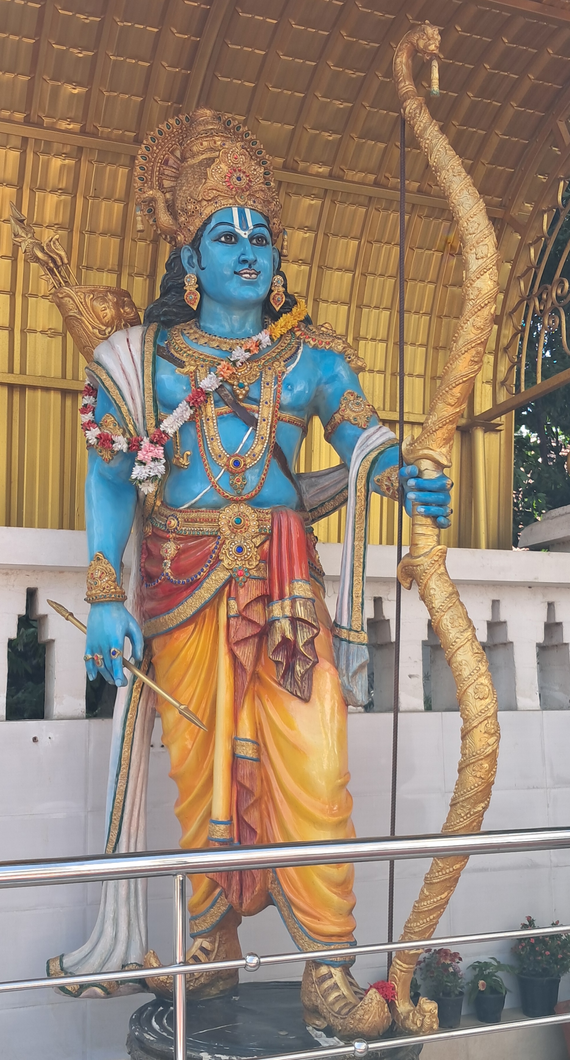 - et Hanuman, le dieu-singe, fidèle compagnon de Rama dans le Ramayana, symbolisant la force, l'engagement, l'héroïsme et la maitrise de soi, mais également la dévotion pour son maître, la bakhti.