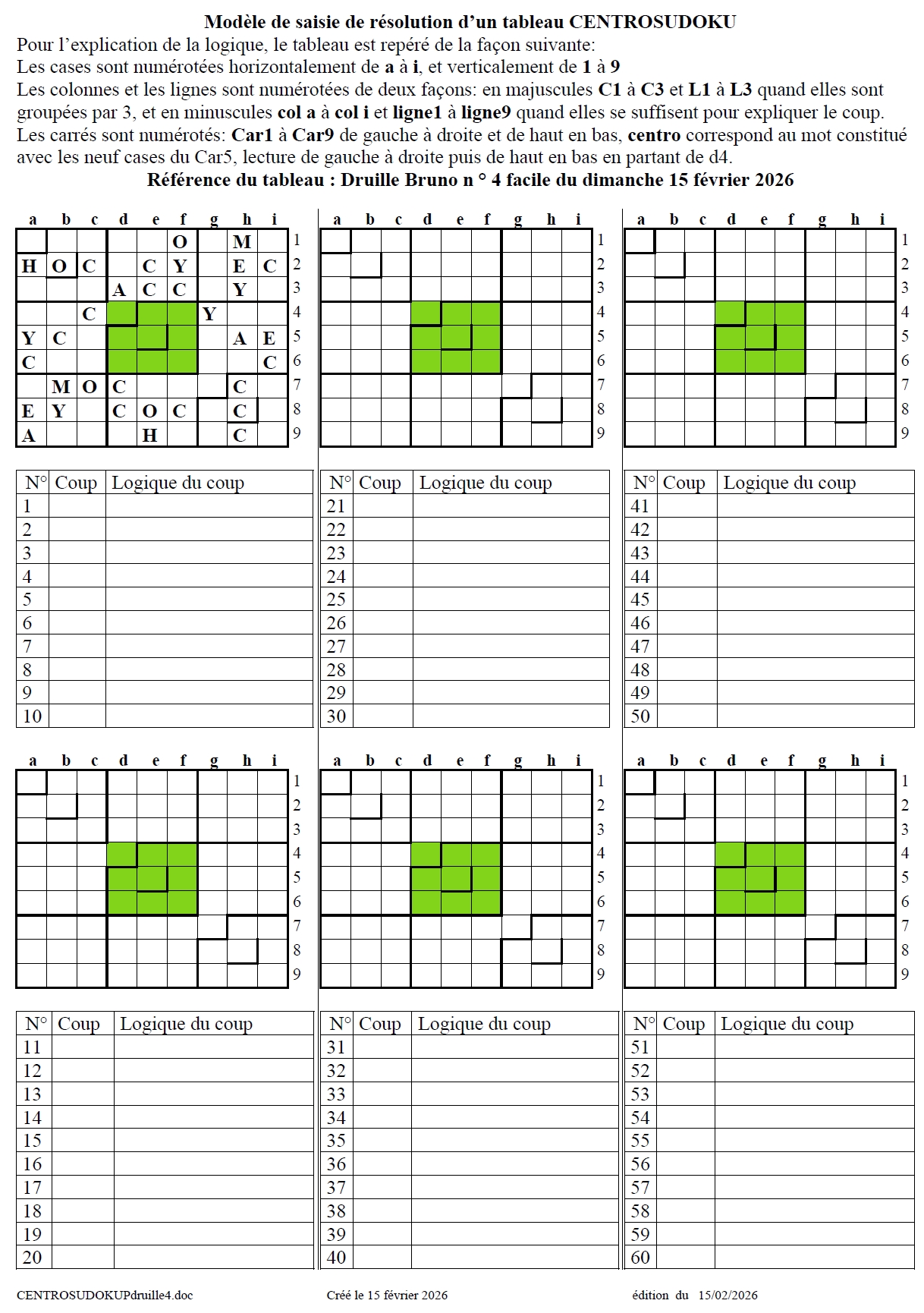 Quatrième centrosudoku, avec la solution du troisième centrosudoku.