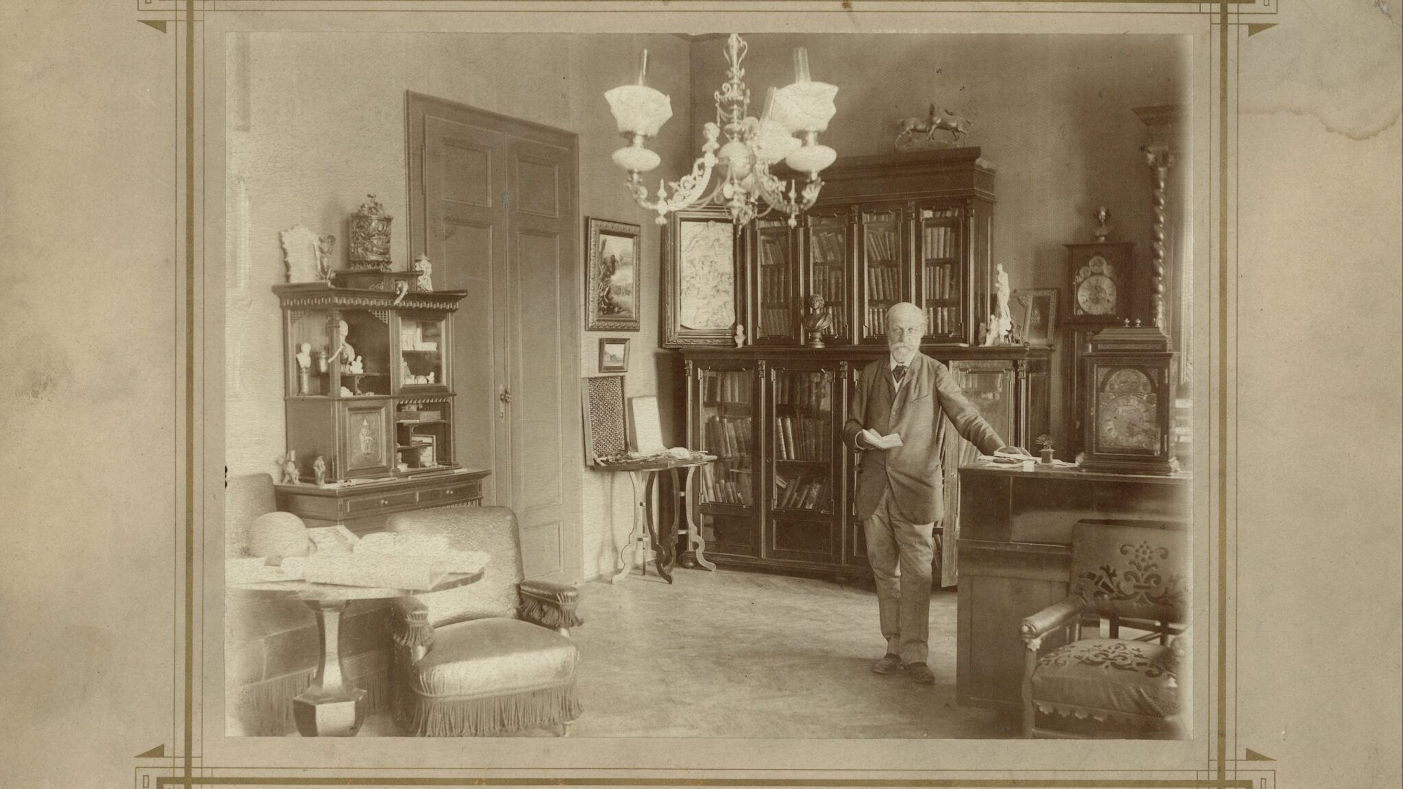 Mór Jókai dans son bureau, sur une photo des années 1890
