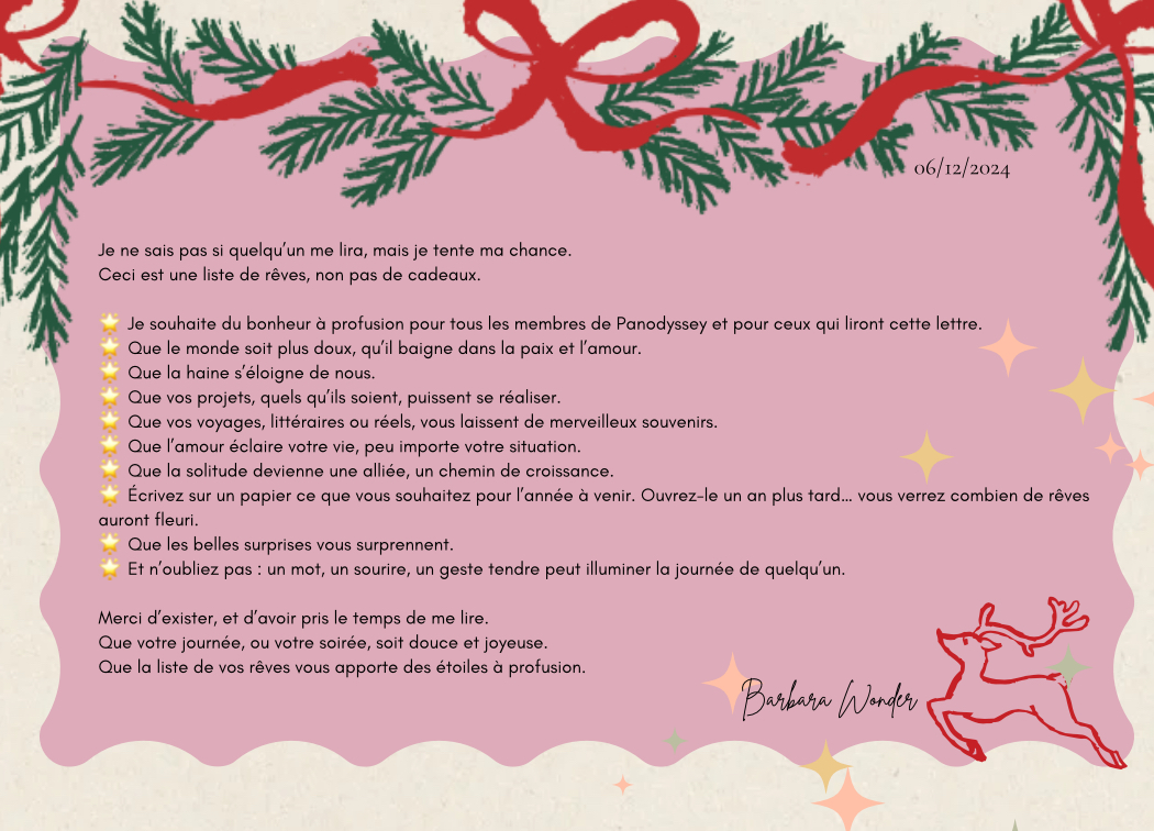 🌟 Je souhaite du bonheur à profusion pour tous les membres de Panodyssey et pour ceux qui liront cette lettre.