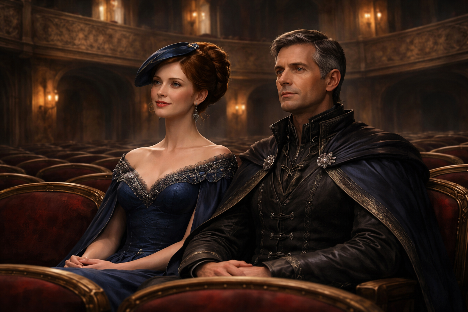 Pourtant, elle aurait pu s’attendre à presque tout... sauf à ça : à son plus grand étonnement, elles firent irruption sur la scène d’une vaste salle de spectacle, aux allures de théâtre, des dizaines de rangées de chaises et de fauteuils alignés devant elle, comme prêtes à accueillir un large public. Fort heureusement, il n’en fut rien, car leur unique auditoire s’avéra bien plus modeste : un homme et une femme assis côte à côte au premier rang, qui interrompirent leur conversation passionnée pour observer l’arrivée de Madame Martone et d’Eldria avec un intérêt certain. Leurs regards enflammés les suivirent en silence alors qu’elles s’avançaient sur la scène, s’attardant en particulier sur Eldria. Leurs visages s’illuminèrent rapidement d’un sourire jovial.