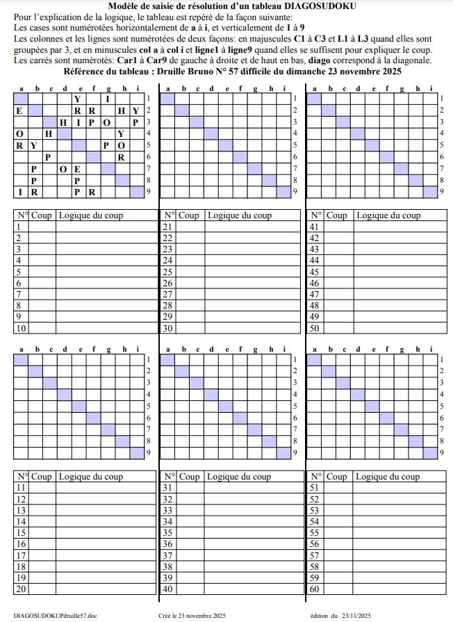57° diagosudoku, avec la solution du cinquante-sixième