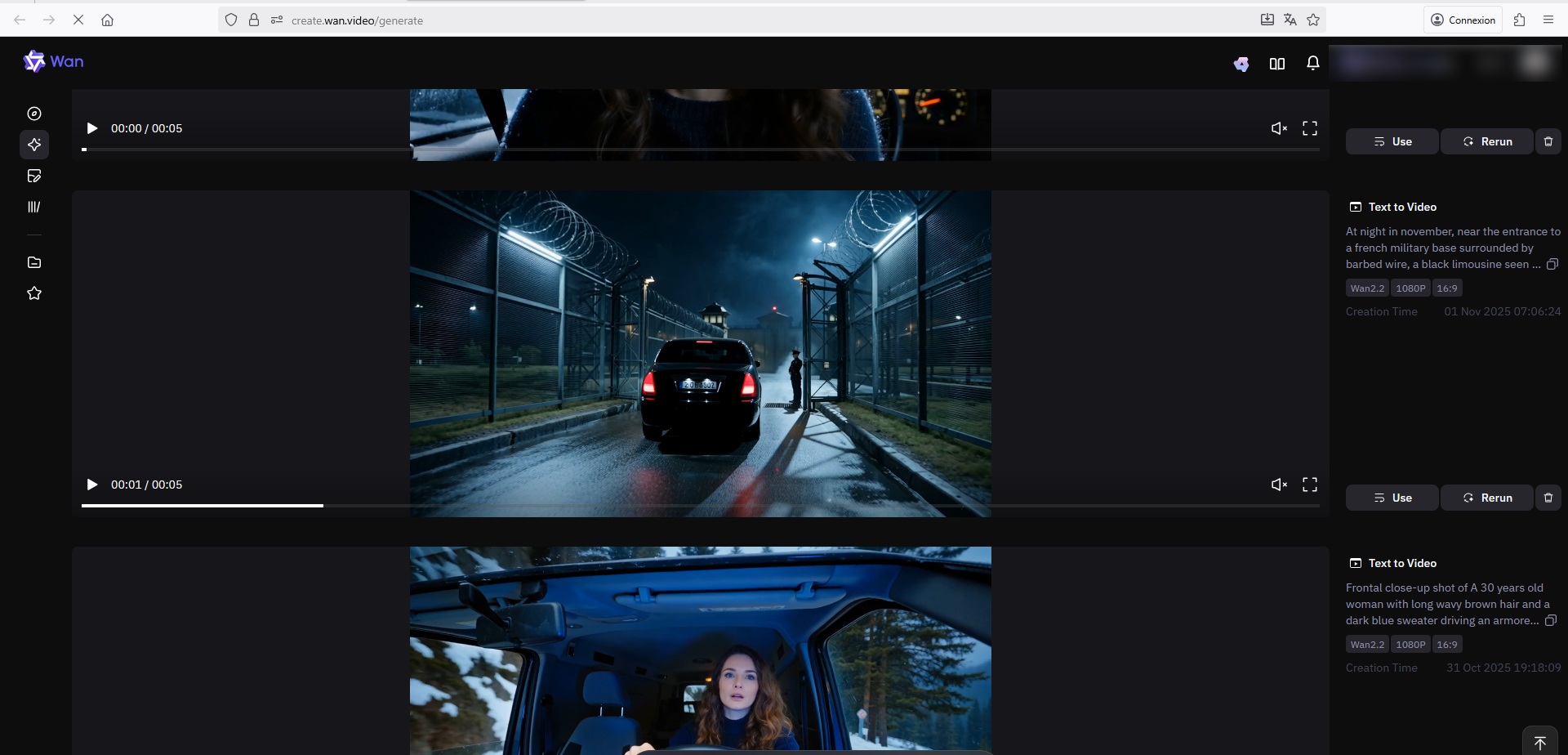 D’abord, il me fallait le matériau de base : les différents plans. Si certains ont été réalisés en 3D à l’aide du logiciel libre Blender (le zoom rotatif sur les livres qui ouvre la vidéo), pour nombre d’autres, impossible de se passer de l’IA. Impossible par exemple d’aller filmer une course-poursuite dans les rues de Paris, accès aux bases secrètes de l’armée Française ? Vous vous doutez bien que je n’ai même pas essayé de demander. Du coup, ces différents plans ont été générés via WAN 2.2 , à partir de descriptions textuelles (les prompts).