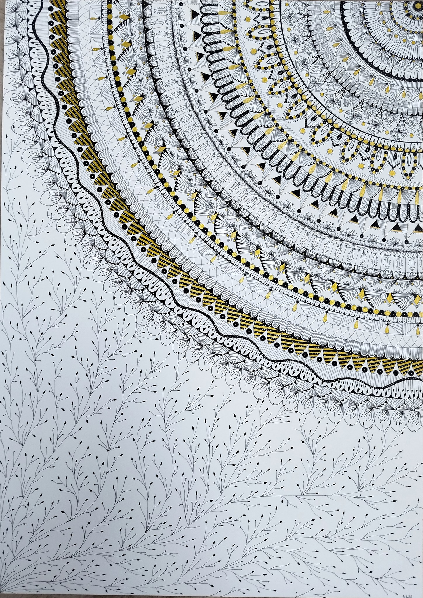 Matériel: Feutre fin noir, stylo gel or et blanc