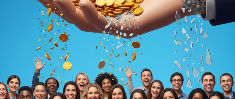 En raison des gains d'efficacité les entreprises redistribuent bien moins de richesse aujourd'hui que durant les « Trente glorieuses ». A l'époque, la redistribution se faisait uniquement au travers des salaires et donc des charges payées dessus. Avec l'attrition du nombre d'heures travaillées par des humains en proportion de la création de richesse en raison de l'automatisation, faussement nommée « hausse de la productivité du travail », la redistribution ne se faisant plus systématiquement, les charges sociales ont progressivement augmenté et se sont multipliées de manière à maintenir la pression salariale sur le bilan des entreprises. Puisque les entreprises ont eu moins de salaires à verser, on a complexifié le système afin qu'il ait besoin de plus de collaborateurs externes, des spécialistes, des coachs, des formateurs, des conseillers, etc. rendant la gestion des entreprises plus coûteuse, fastidieuse, mais répartissant artificiellement la richesse. D'autant que les acquis sociaux ont garanti de plus en plus de droits humains élémentaires visant à ce que nul ne soit laissé sur le bas-côté, ce qui est également dans l'intérêt des entreprises, puisque cela élargit l'assiette de consommation. D'où l'origine de la perception (sans jeu de mot) que le partage de la richesse est désormais une captation abusive par une société dispendieuse.
