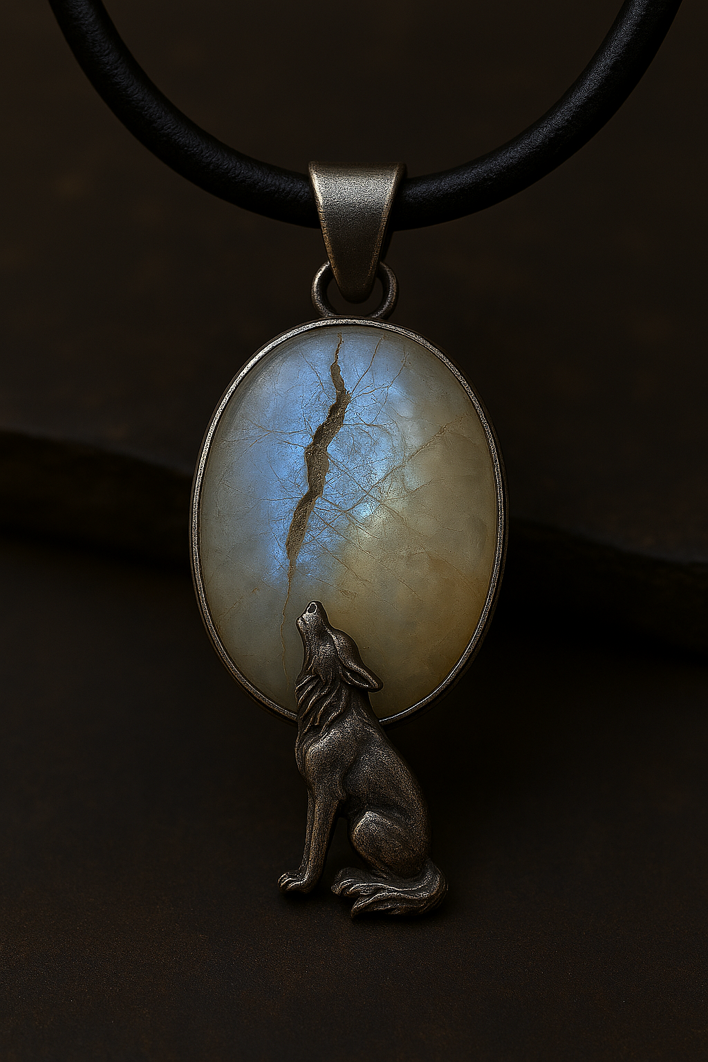 Je suis sous son charme depuis que j'ai posé les yeux dessus. Tout en lui me fascine : cette pierre de lune abîmée, le loup en argent terni et ce cordon de cuir noir qui le retient. Qui me retient.