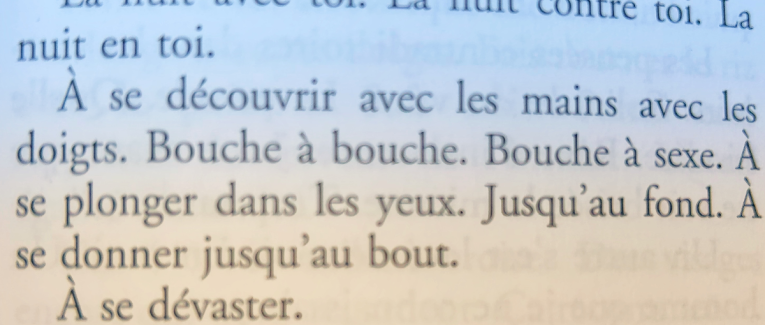 On en mangerait plein, en s’en mettant partout, comme pour l’amour, qu’on referait après ! Et le lendemain matin aussi parce que bien sûr, nous dormirions ensemble !