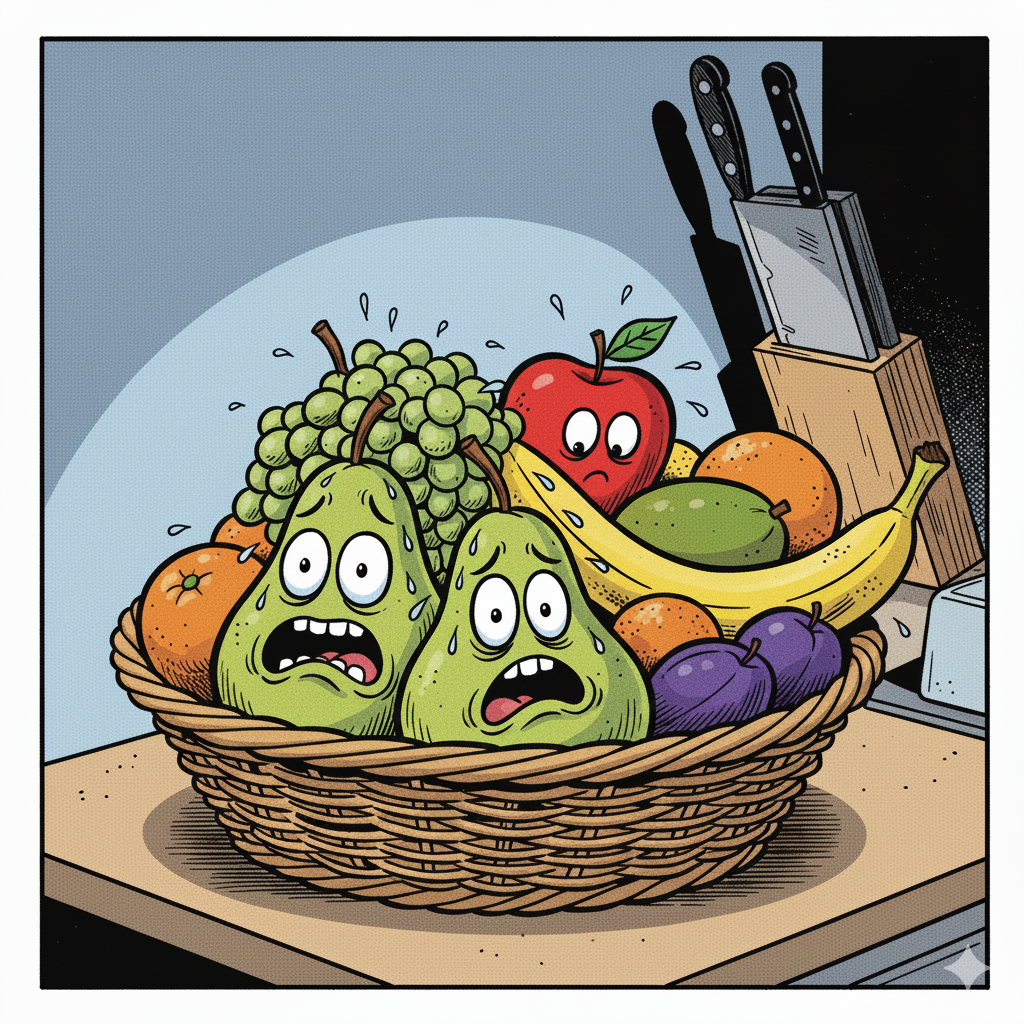 Tapie au fond du compotier, je guettais le retour de William. Il était parti depuis longtemps déjà. Ça devenait angoissant. Je n’osais me redresser pour scruter alentour. Que je laisse dépasser mon pédoncule et le Monstre n’aurait fait qu’une bouchée de moi. Pourvu qu’il n’ait pas mis la main sur William pour le cuisiner.