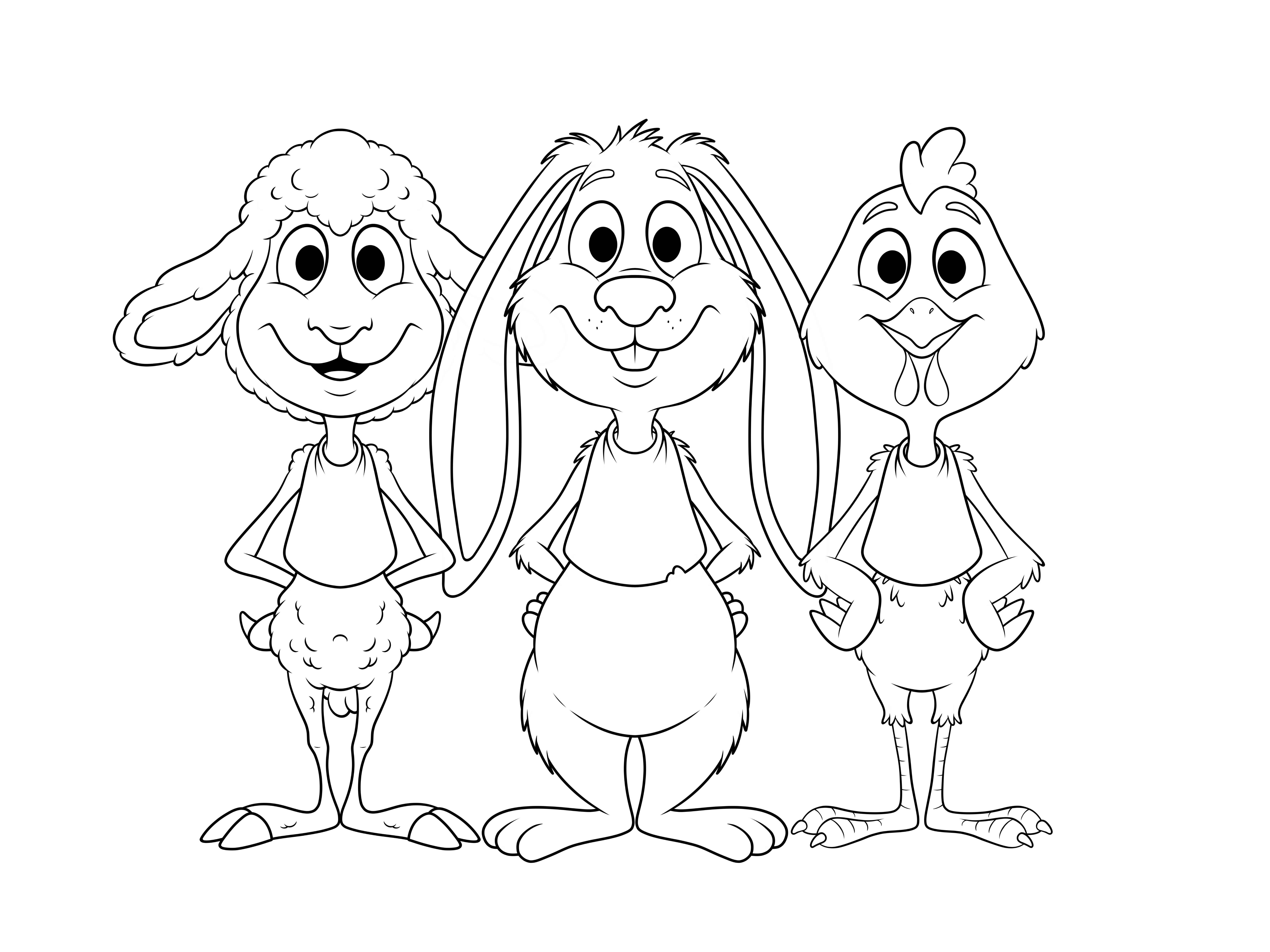 Ces trois personnages prirent la pose pour un défilé de Pâques en fête.