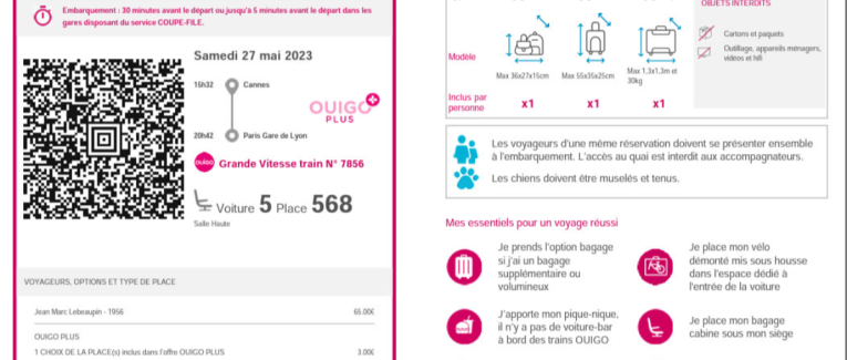 Dans votre lettre du 2 juin, adressée à Monsieur Jean-Pierre Farandou, Président du Directoire de SNCF, vous relatez la situation que vous avez vécue le 27 mai lors à l’occasion de votre voyage Cannes/Paris gare de Lyon. Vous expliquez que vous vous êtes trompé de train, vous êtes monté à bord d’un autre OUIGO pour Lyon. Lors du contrôle de votre billet, la cheffe de bord vous a informé de cette erreur. Vous déplorez d’ailleurs l’attitude de celle-ci et de son équipe à votre égard. Vous n’avez pas été verbalisé mais vous vous êtes retrouvé démuni devant cette situation et les remarques des agents. Vous êtes finalement descendu à Marseille puis dirigé vers un agent de la voie n°1, comme conseillé à bord. Le TGV en partance pour Paris étant complet, l’accès vous a été refusé. Vous expliquez avoir été de nouveau raillé par le personnel à quai et invité à racheter un billet. Seul un titre en 1ère classe à 168 euros était accessible sur un TGV INOUI. Malgré ce surcoût, vous avez validé l’achat sur la borne. Vous souhaitez être indemnisé de ce surcoût et demandez à ce que votre témoignage concernant l’attitude des agents que vous vous avez rencontrés soit transmis.