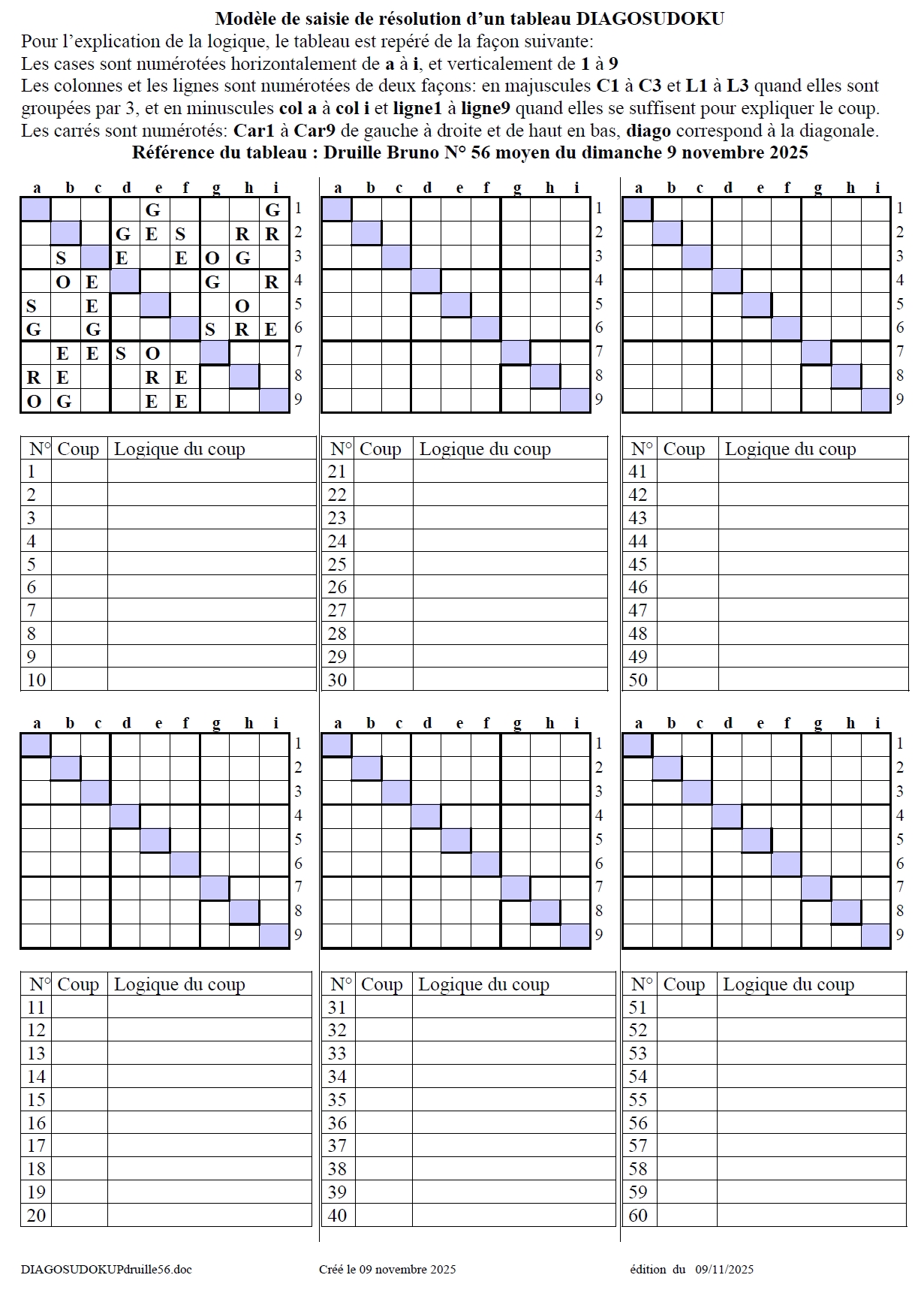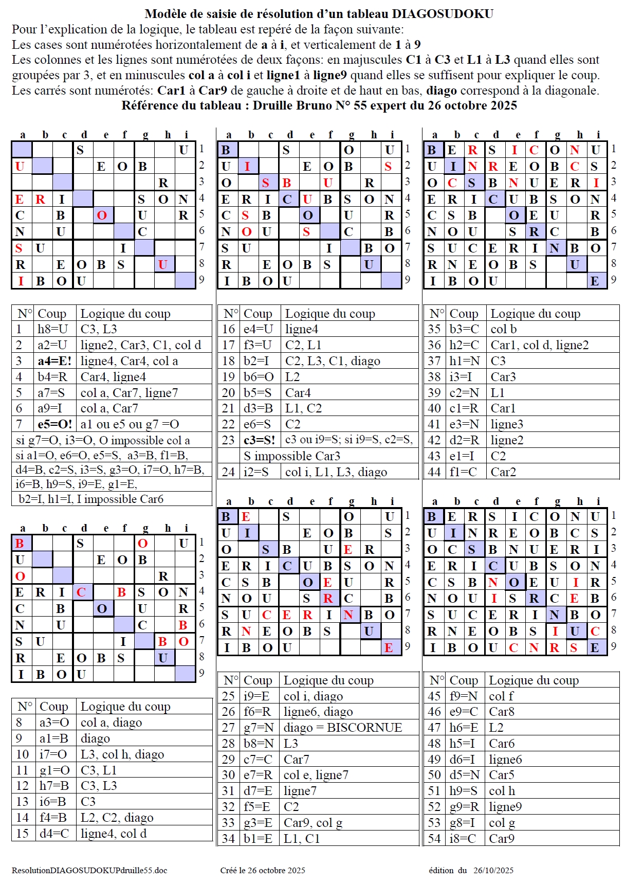 56° diagosudoku, avec la solution du cinquante-cinquième