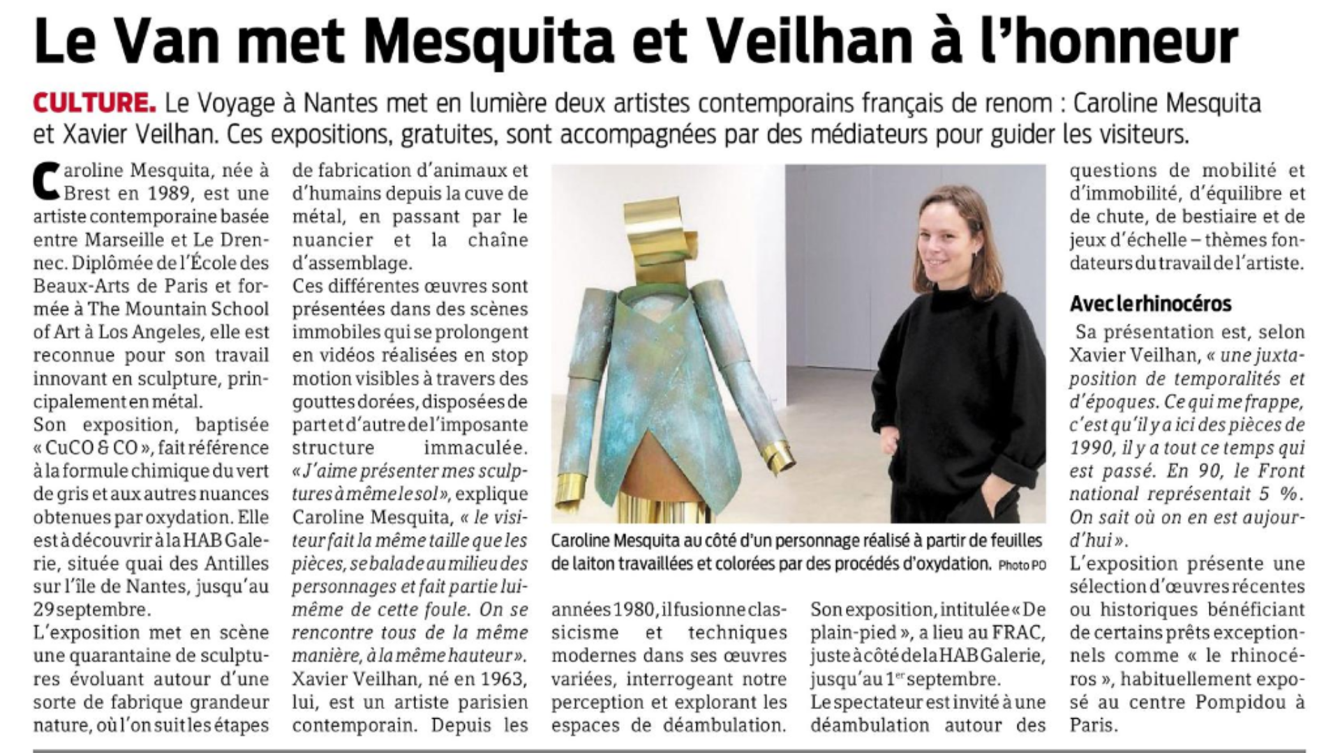 Caroline Mesquita, née à Brest en 1989, est une artiste contemporaine basée entre Marseille et Le Drennec. Diplômée de l’École des Beaux-Arts de Paris et formée à The Mountain School of Art à Los Angeles, elle est reconnue pour son travail innovant en sculpture, principalement en métal.
