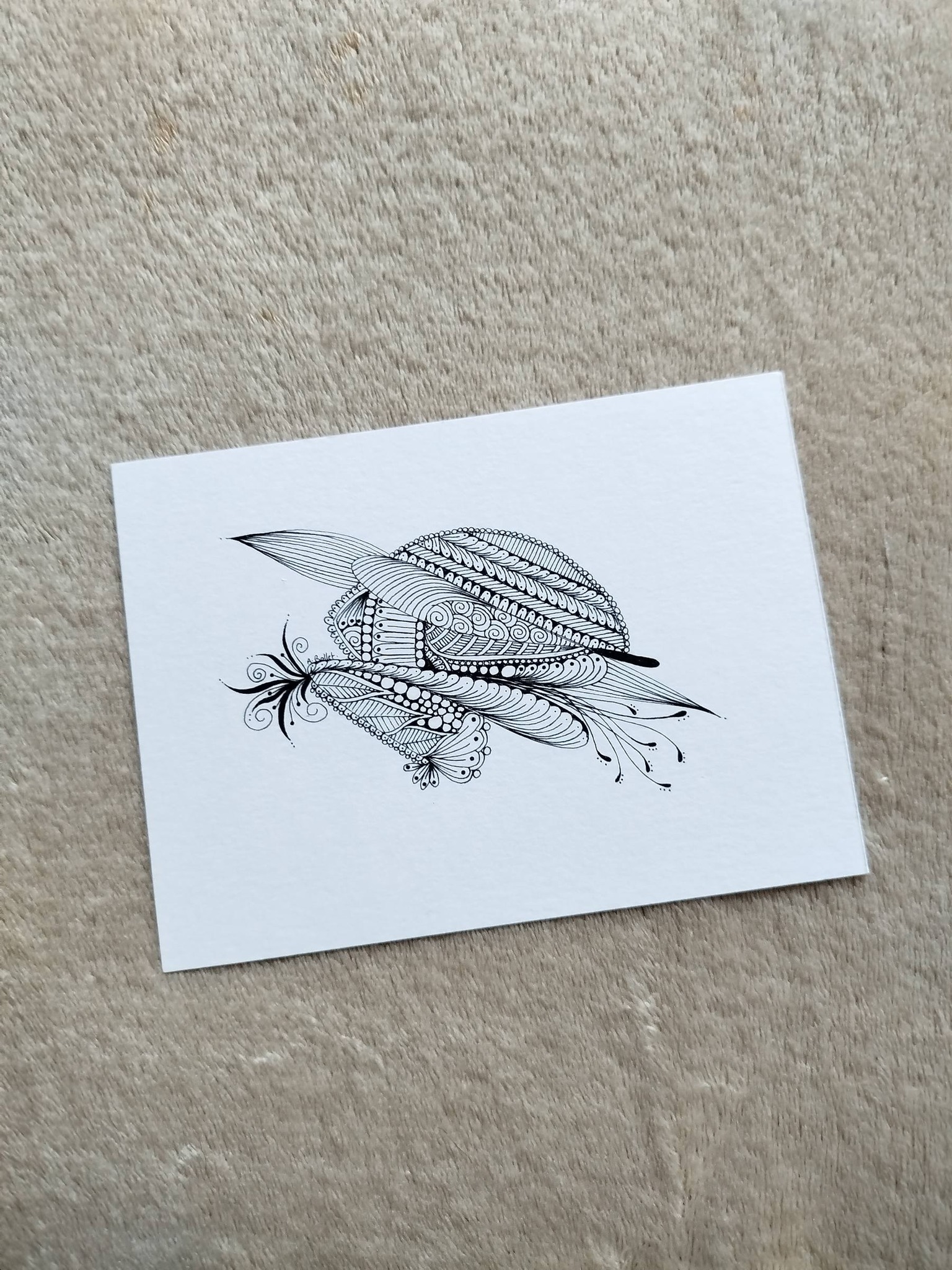Une forme légère, presque ailée, surgit du calme. Les lignes fines et organiques s'entrelacent comme un souffle ancien porteur d'intuition et de douceur. Une carte Zen'art à offrir ou à garder près de soi, comme un message murmuré à l'Âme.