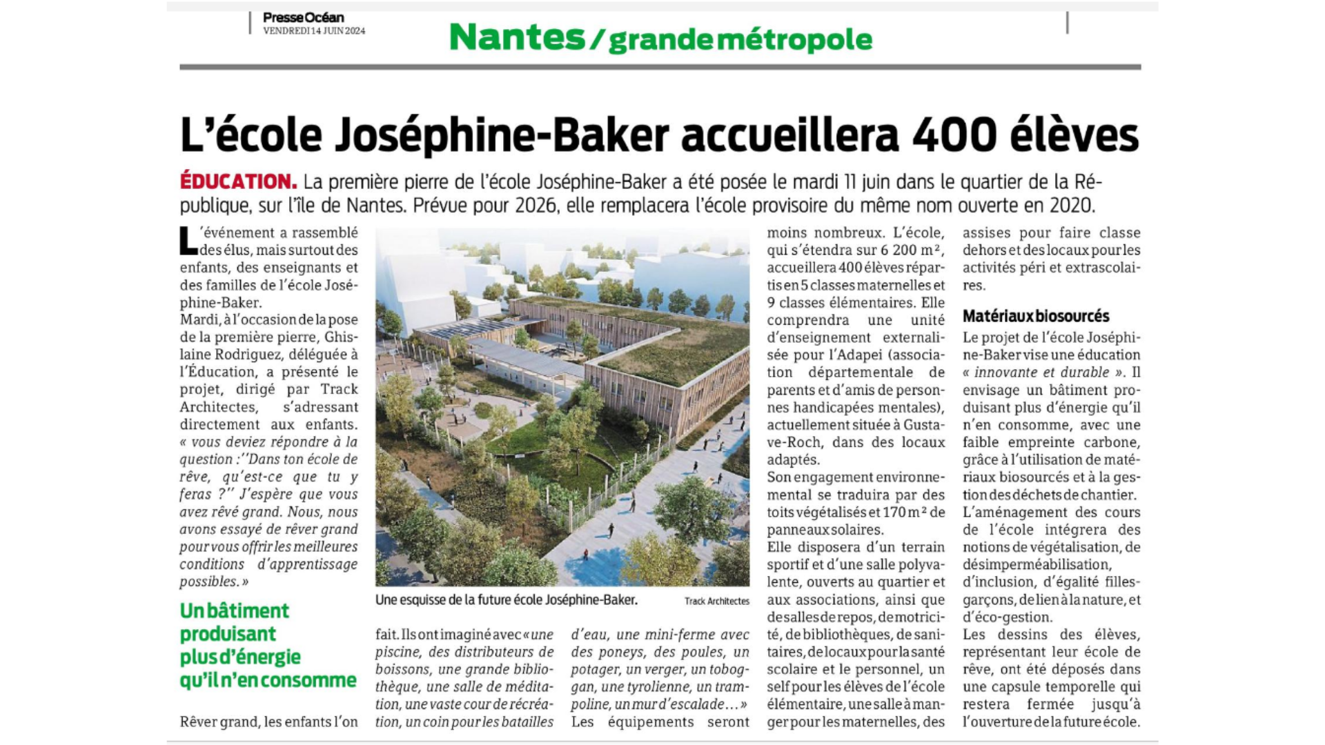 La première pierre de l’école Joséphine Baker a été posée le mardi 11 juin dans le quartier de la République sur l’île de Nantes. Cette école, prévue pour 2026, remplacera l’école provisoire du même nom ouverte en 2020.