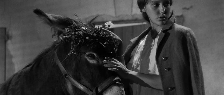"Au hasard Balthazar" est une fable décrivant la nature humaine du point de vue d'un âne qui au fil de son existence, passe de maître en maître. Son destin suit en parallèle celui de Marie (Anne WIAZEMSKY) qui le reçoit en cadeau alors qu'il n'est encore qu'un ânon et elle, une petite fille. Mais une fois l'innocence de l'enfance révolue, l'âne est séparée de sa maîtresse pour subir ce qui s'apparente à un véritable calvaire: tantôt bête de somme et tantôt animal de foire, il croise plusieurs fois le chemin de Marie lorsqu'il tombe sous la coupe de ses amants, particulièrement de Gérard le voyou qui s'acharne autant sur elle que sur lui. Comparé au vagabond de Charles CHAPLIN, Balthazar me fait tout autant penser à Buster KEATON de par son impassibilité, animal oblige qui fait d'autant mieux ressortir les vices de ses maîtres: l'alcoolisme d'Arnold le vagabond, l'avarice du marchand de grains ou encore l'orgueil du père de Marie pour qui avoir un âne dans les années 60, c'est démodé. C'est que Balthazar est également le témoin malgré lui d'une France en pleine mutation où les signes de modernité dans le monde paysan se multiplient, monde paysan qui est sur le point de disparaître. Enfin, impossible de passer à côté de la dimension christique du film. Déjà parce que l'âne est un animal biblique associé à la naissance du Christ et qu'il porte le nom de l'un des trois rois mages. Mais aussi parce que le martyre signifie en grec ancien "témoin" au sens de celui à qui on inflige de nombreux tourments ici par le seul fait d'être un être vivant asservi à l'homme. L'âne devient ainsi par son martyre le témoin de la cruauté de l'homme envers plus faible que lui et plus généralement de sa folie cupide et meurtrière envers le vivant. Robert BRESSON signe un film moraliste d'apparence passéiste mais en réalité visionnaire. La preuve avec la sortie prochaine de "Hi-Han" (2022), un remake signé par Jerzy SKOLIMOWSKI dans un monde en train de basculer du triomphe de la technologie, du capitalisme et du consumérisme au cauchemar du dérèglement climatique et de la sixième extinction de masse.