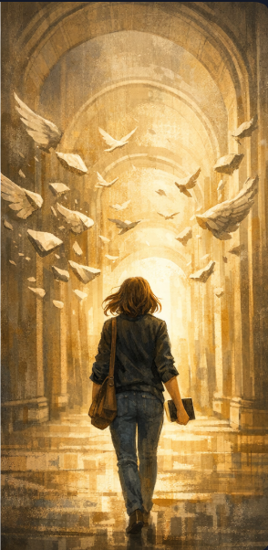 Elle avait passé sa jeunesse à analyser cette statue, à écrire des dissertations trop sages, à réciter des dates, des hypothèses, des noms d’archéologues… Mais jamais, elle ne l’avait vue sous cet angle : seule, immense, presque vivante.