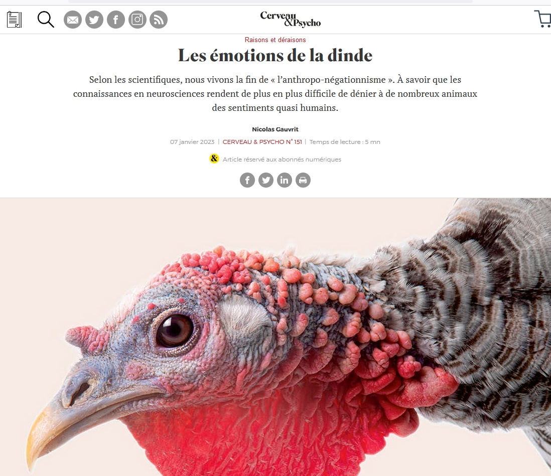 Je réagis à la lecture d’un article dans Cerveau&Psycho n° 151 de février 2023 (Les émotions de la dinde).