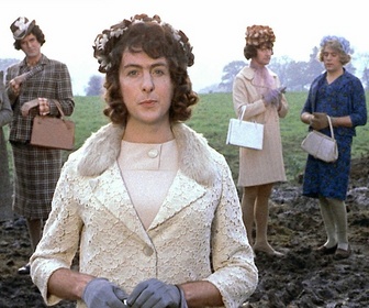 Le titre francophone du Flying Circus résume parfaitement l'humour anglais des Python "Absurde n'est-il pas?" Absurde, non-sensique et pourtant non dénué de sens, c'est d'ailleurs sur un autre film à sketches que s'est achevé la carrière cinématographique des Python (en tant que groupe), le bien justement intitulé "Monty Python : Le Sens de la vie" (1982). Même s'il n'y a pas un fil directeur aussi travaillé que dans le film de 1982, "Pataquesse" bénéficie quand même d'effets de transition entre les sketches qui ainsi résonnent entre eux notamment grâce aux animations loufoques de Terry GILLIAM. Les cibles du groupe sont les institutions, tournées en ridicule: l'armée, l'administration, le mariage, le patriarcat, l'Eglise ou encore les médias. Certains sketches sont hilarants (pas forcément les plus connus selon moi): le gang des vieilles dames qui terrorisent le quartier (les hell's grannies, il fallait y penser!); le conseiller d'orientation matrimoniale (Eric IDLE) qui se paye en nature avec l'épouse aguicheuse juste sous le nez du mari cocufié (rôle attribué à Michael PALIN, le spécialiste des benêts et des faibles en tous genres) ou dans le même genre le désopilant "Nudge Nudge" avec dans le rôle de l'obsédé, toujours Eric IDLE et celui de l'homme subissant ses insinuations sexuelles, Terry JONES. On rajoutera la chanson du bûcheron (Michael PALIN), de plus en plus tendancieuse au fur et à mesure de son déroulement ou encore "Blackmail", une émission de télévision extorquant de l'argent aux spectateurs, notamment un militaire (Graham CHAPMAN) en diffusant des images compromettantes*. Humour grinçant rehaussé par le fait que le présentateur putassier (Michael PALIN encore!) était quelques minutes auparavant un timide comptable, "M. Anchois" qui cherchait une reconversion plus excitante dans le bureau d'un conseiller d'orientation professionnelle (John CLEESE)...