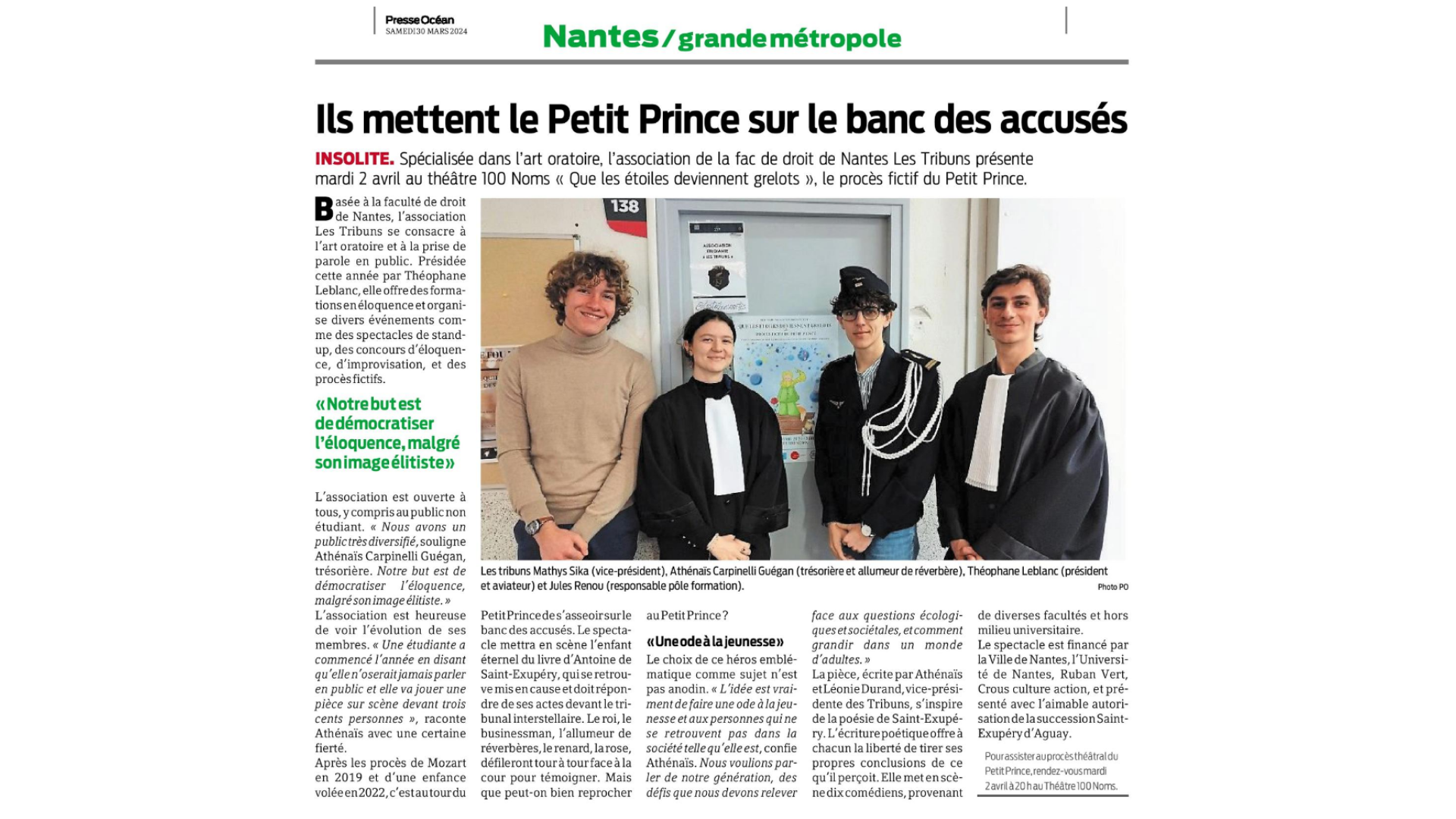 Les Tribuns Nantes présente « Que les étoiles deviennent grelots - le procès fictif du Petit Prince. »
