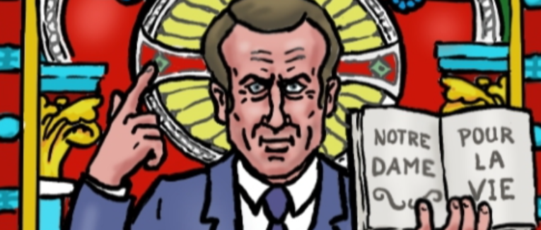 Le Président Macron s'est particulièrement investi pour la renaissance de Notre-Dame de Paris suite à son incendie d'avril 2019. Voici en exclusivité un vitrail qui est dédié, en guise de remerciement, au sauveur de cette cathédrale et que les visiteurs pourront admirer lors de l'ouverture au public de Notre-Dame prévue pour le 8 décembre 2024 :