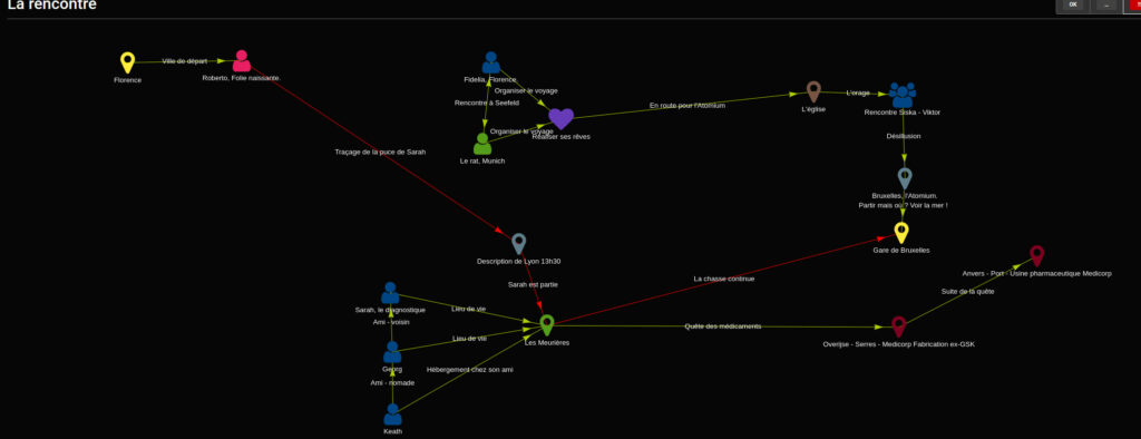 Parallèlement au Fabula Deck, j’ai également la nécessité de conserver une carte des déplacements de mes acteurs afin que la trame et, surtout, le fil du temps soient cohérents.